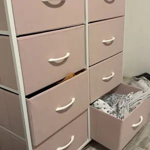 QUALITY CONSTRUCTION - Made of reliable metal frame and durable MDF wooden top; 8 removable and foldable drawers; Easy pull plastic handles help conveniently open and close the drawers; 4 adjustable plastic feet help protect your floor from scratches.