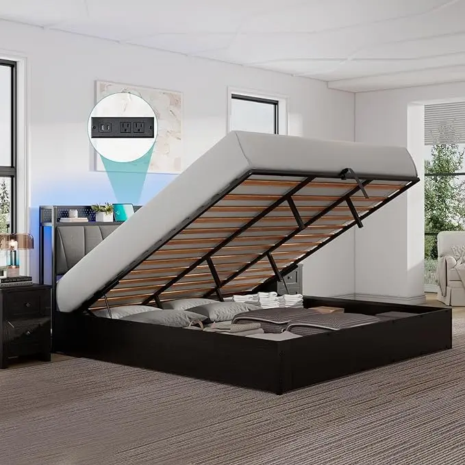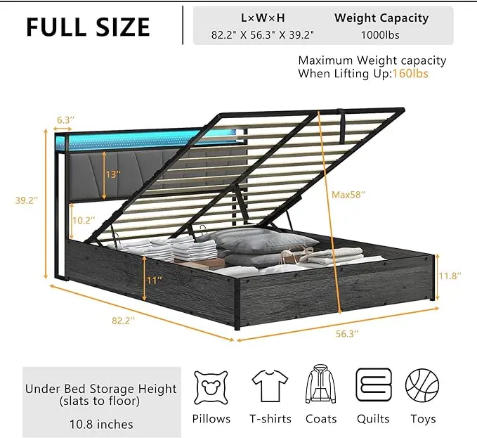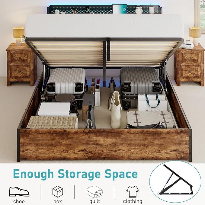 ·【Ample Storage & Space-saving Design】The lift-up bed is equipped with a hydraulic bed board that can be easily lifted or closed. making it ideal for storing suitcases, storage bags, out-of-season bedding and clothes, etc. Keeping your room clean and tidy.