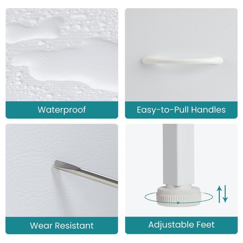 ·Easy-pull drawers with handles for smooth opening and closing. For easy cleaning, just wipe it clean with a piece of damp cloth and get it air-dried.