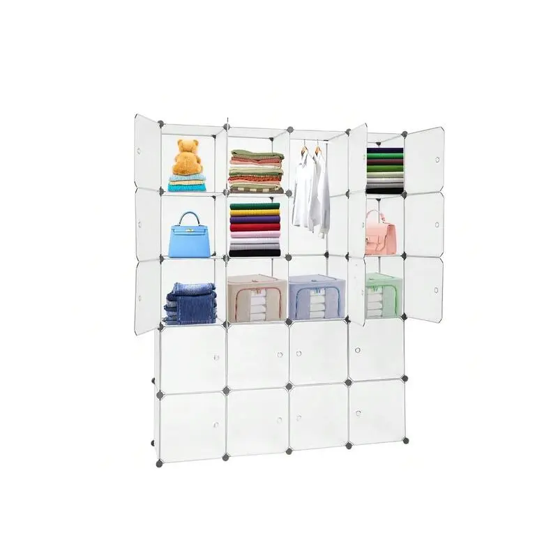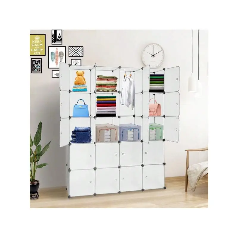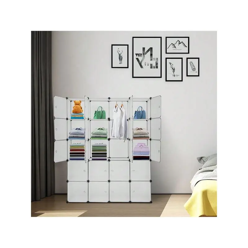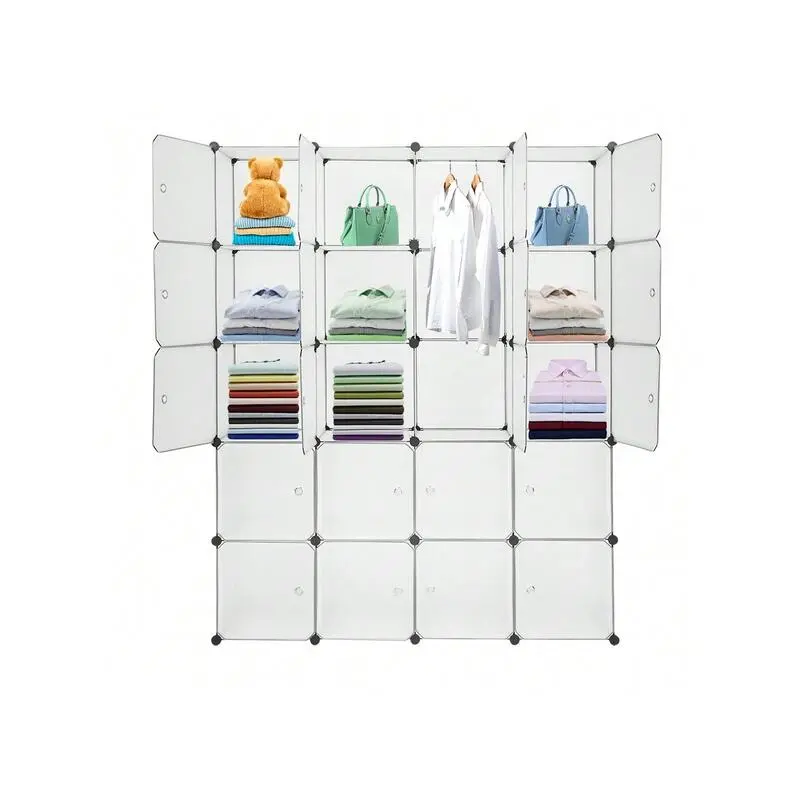 outstanding quality 1pc 20 Organizer Stackable Plastic Cube Storage Shees Design Multifunctional Modular Closet Cabinet With Hanging Rod White