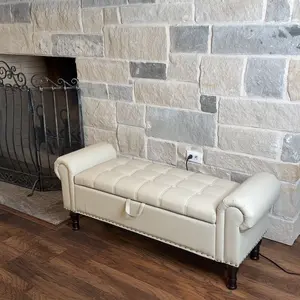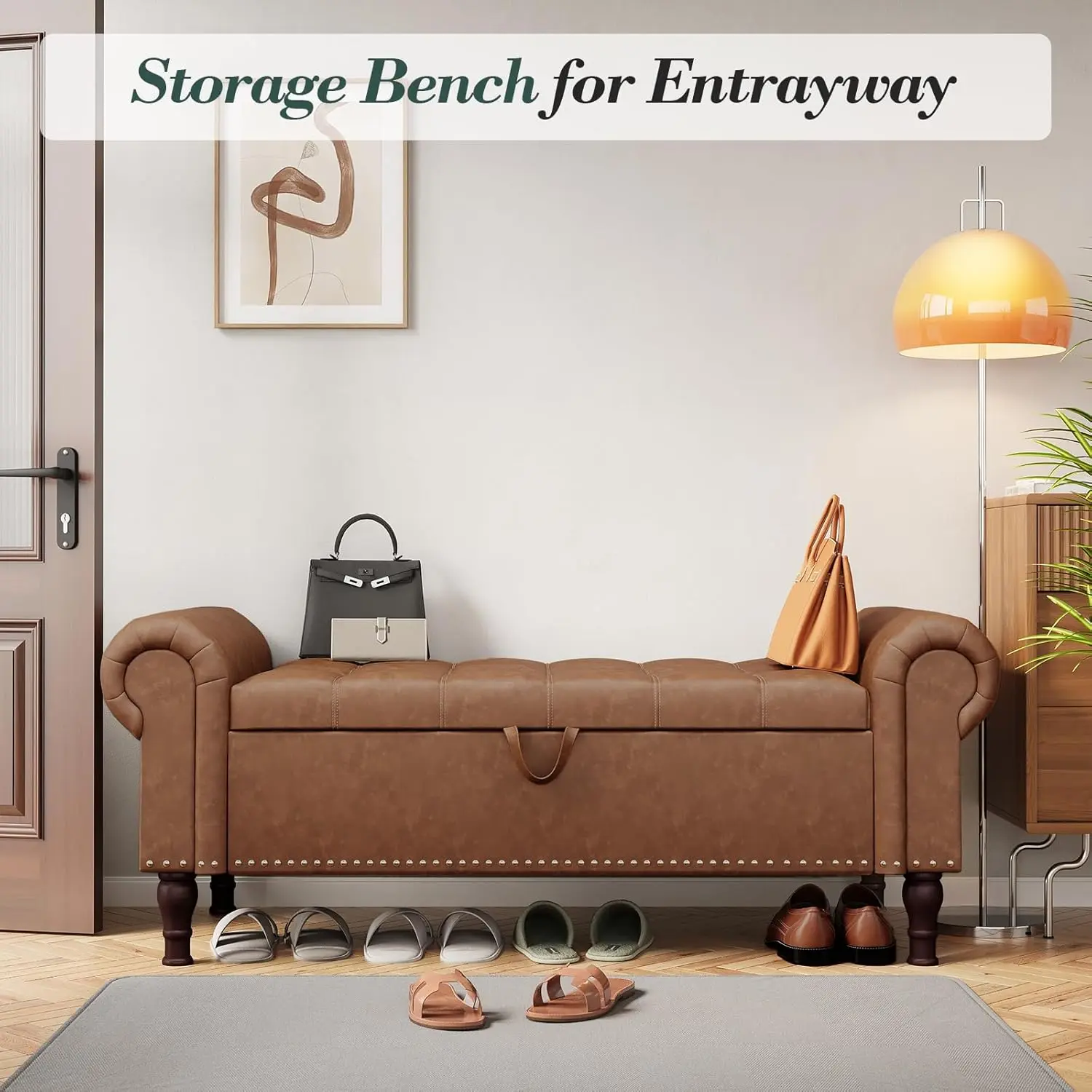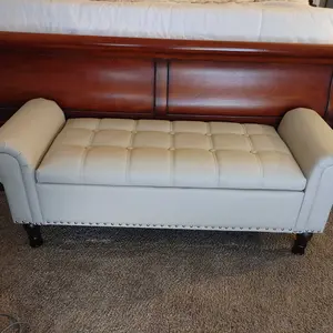 ·【Rolled arm$ vintage rivets】This bed bench blends Rolled Arm with Vintage Rivets, capturing the essence of a truly vintage piece. The button-tufted stitching on the lid enhances design of this end of bed bench. Simple lines provides a truly appealing look,feel and design. Perfect into a variety of styles of home scene.