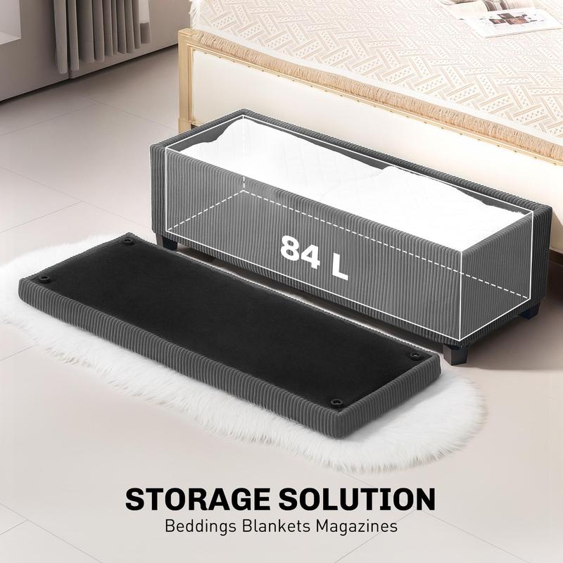 Elevate your space with the HOMCOM Storage Ottoman, featuring a chic, breathable corduroy design that’s as stylish as it is skin-friendly. Its spacious interior offers convenient storage for bedding or magazines, while doubling as a footstool or cozy window bench — blending elegance with functionality.