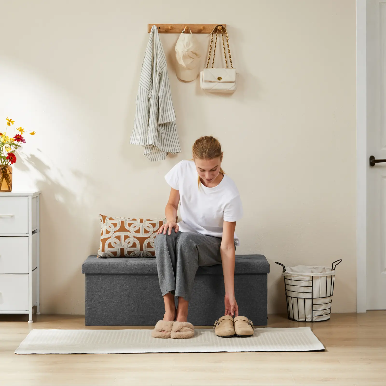 ·[Easy Assemble & Customer Service] With just four simple steps, you can assemble this storage stool in just two minutes. The product comes with an installation manual, and you can also find the installation video on this page. If you have any questions during installation and use, please feel free to contact us at any time.