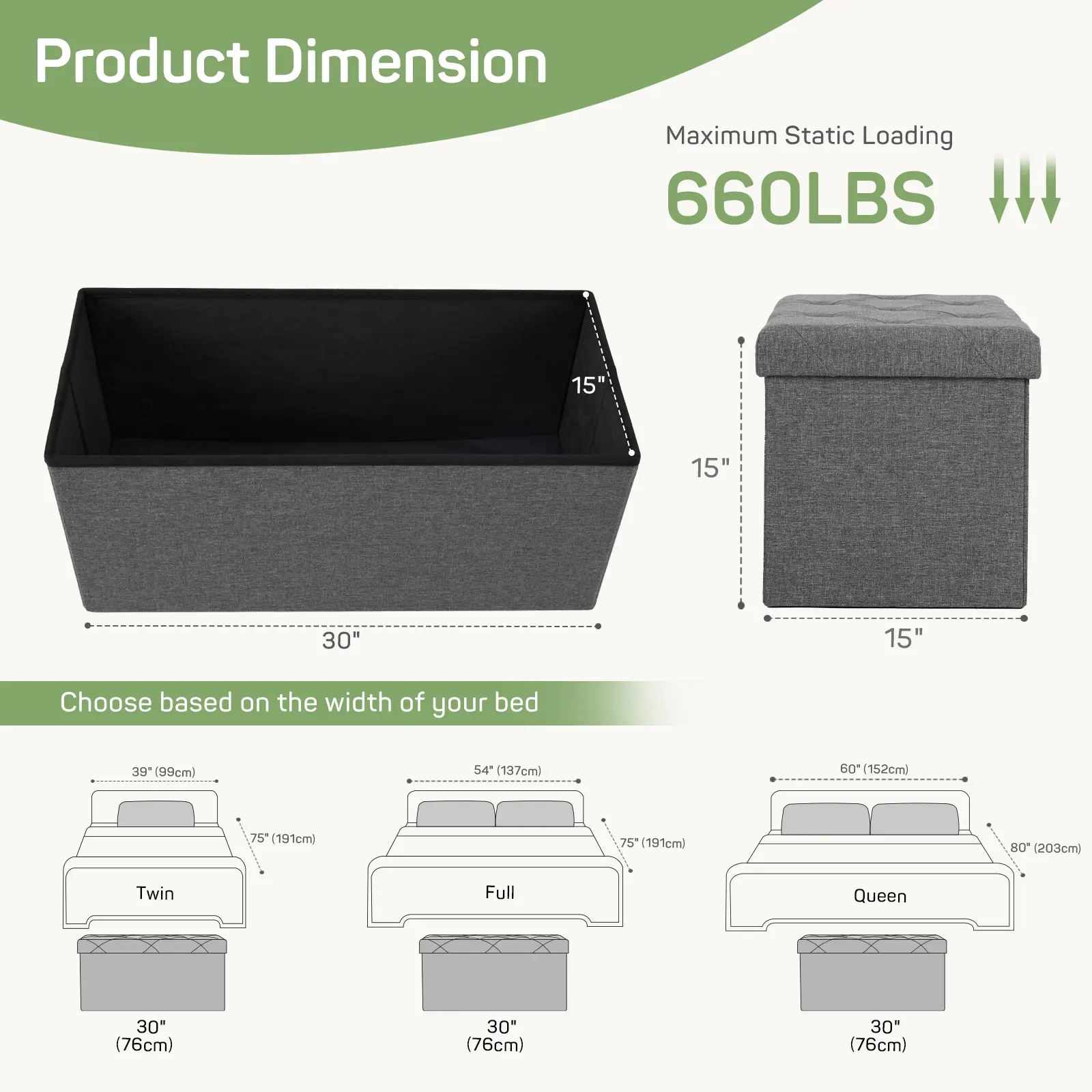 ·[Comfortable & Durable] The entire surface of this storage ottoman bench is covered with linen fabric and the top is filled with high-density foam to ensure it is soft and comfortable. The ottoman stool is supported throughout by a thick MDF board, giving it a static load capacity of up to 660 lbs.
