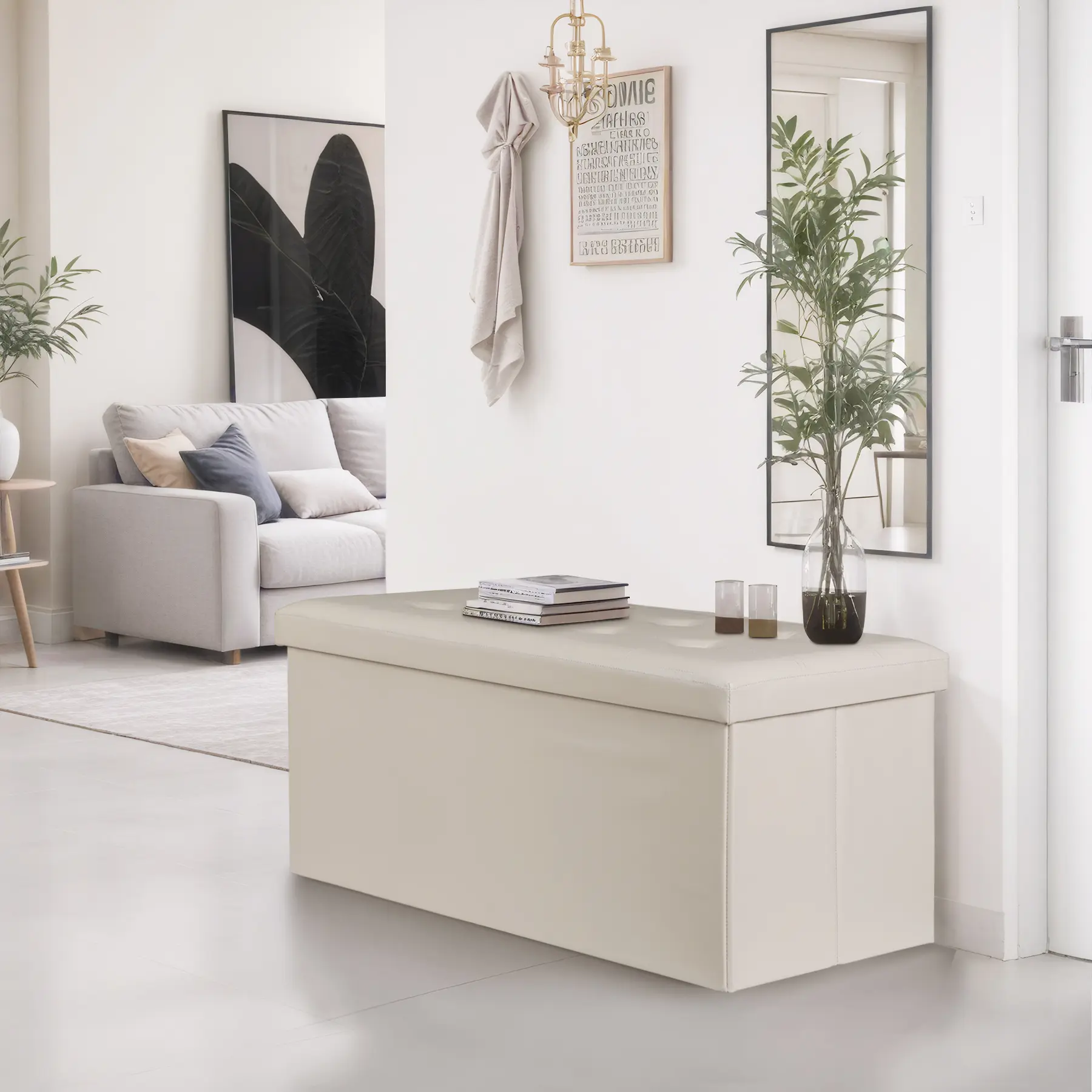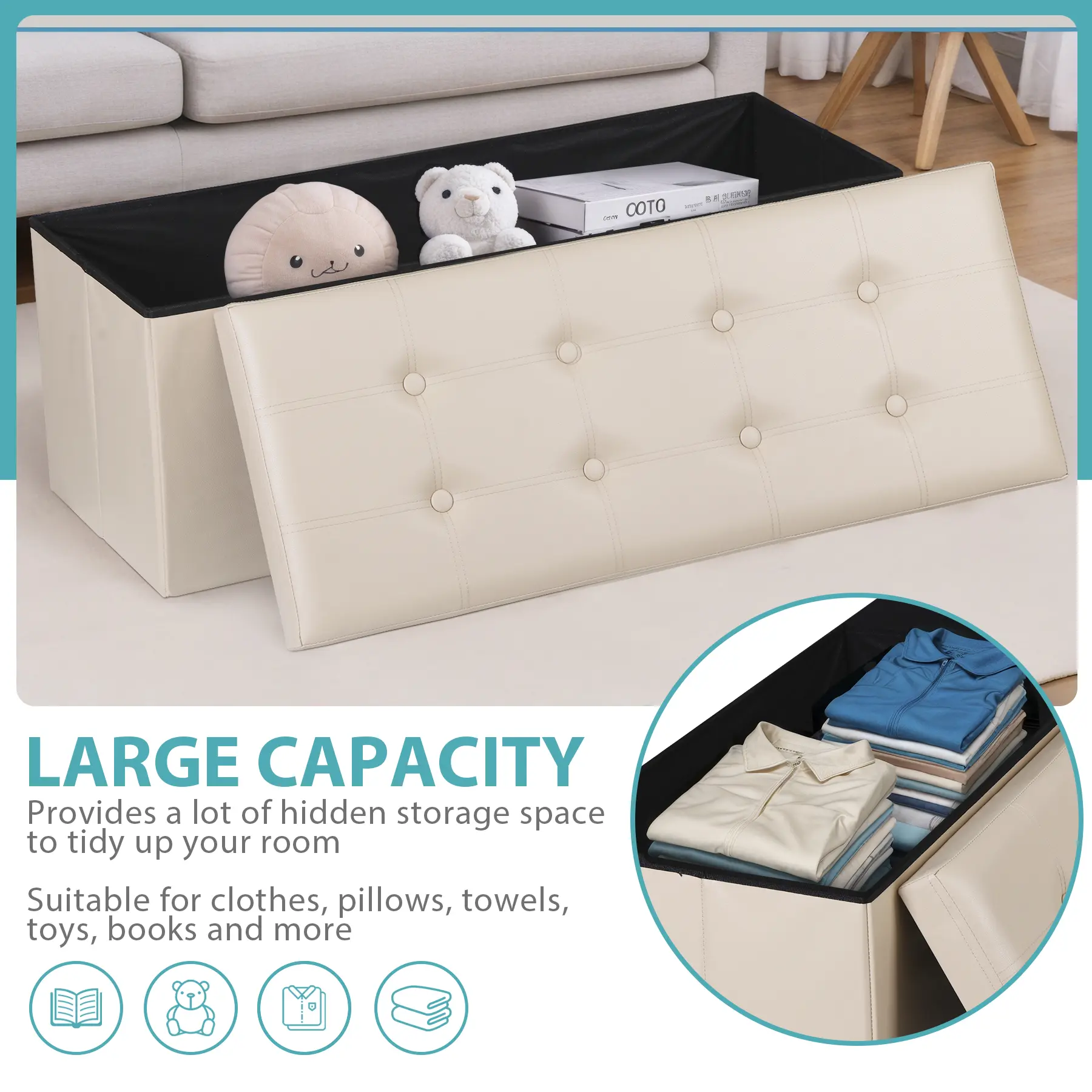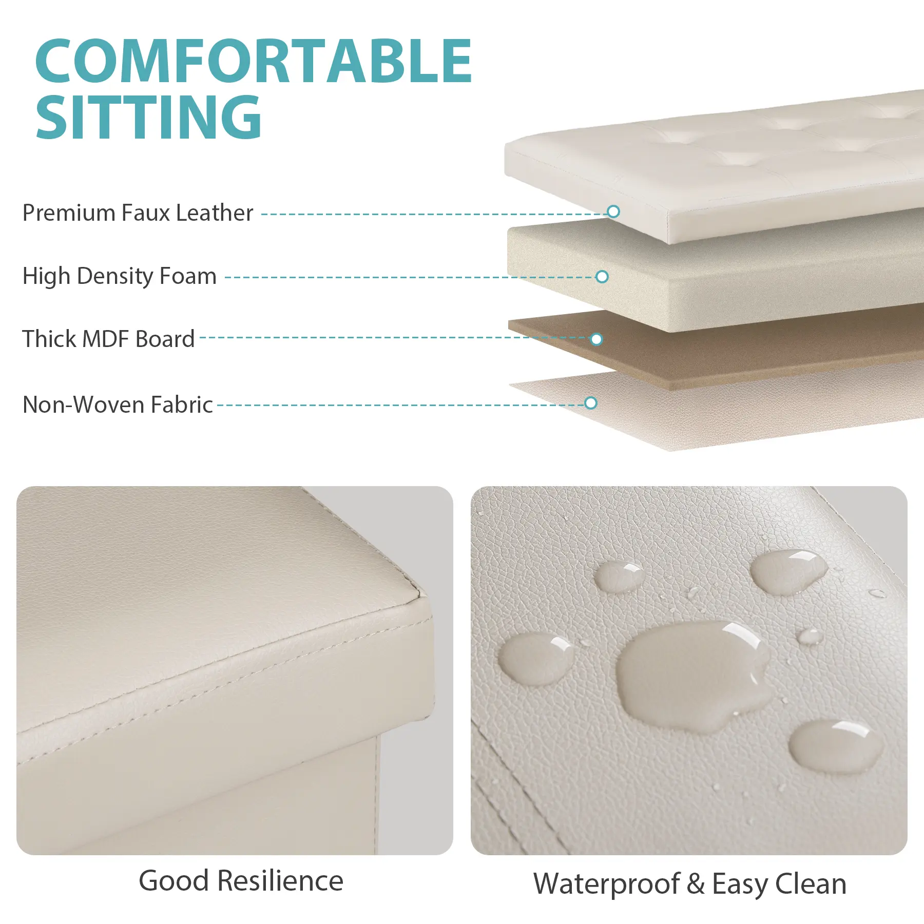 The collapsible design makes our storage furniture easy to use and store. Fold it flat when not in use to save space. The PVC leather surface is waterproof and easy to clean.