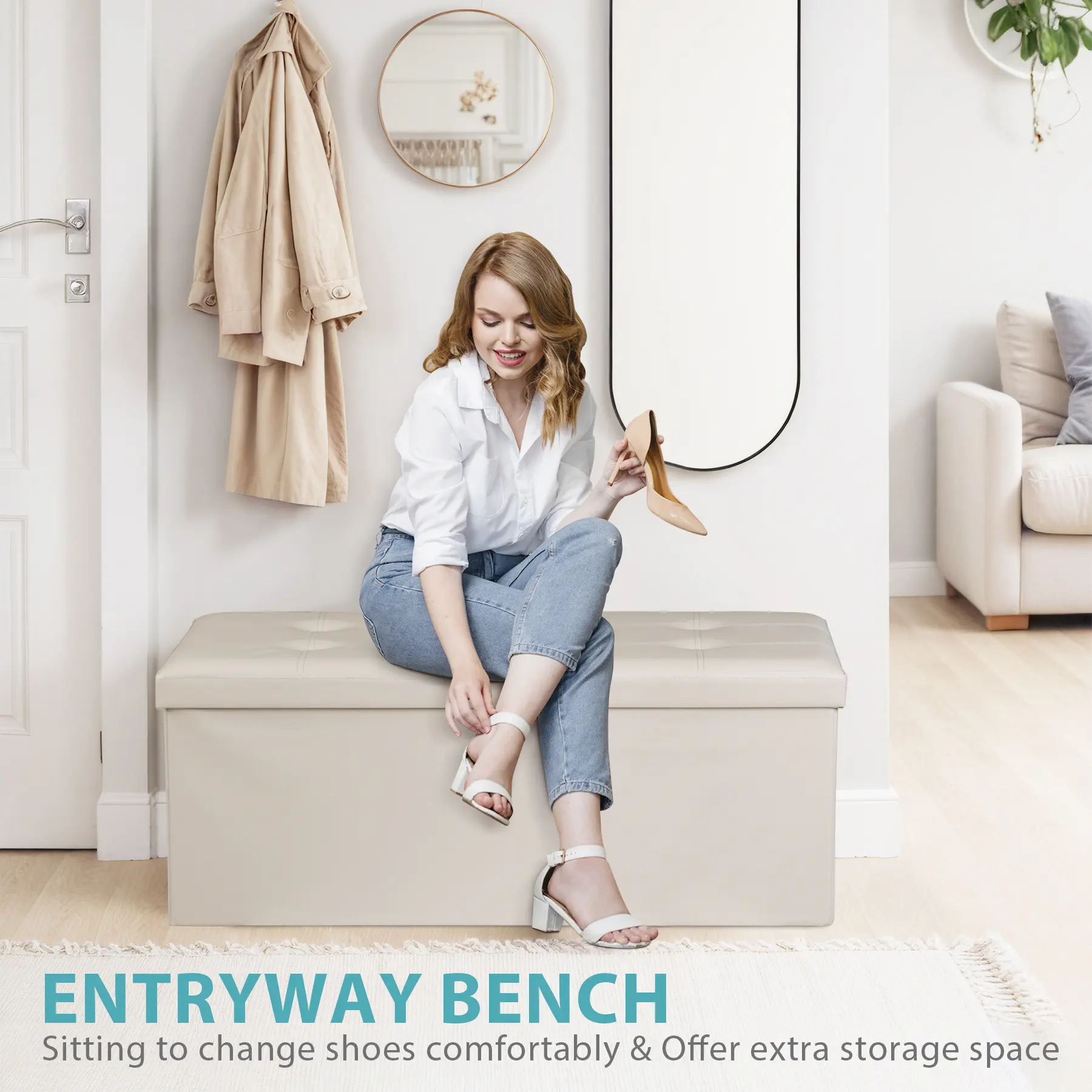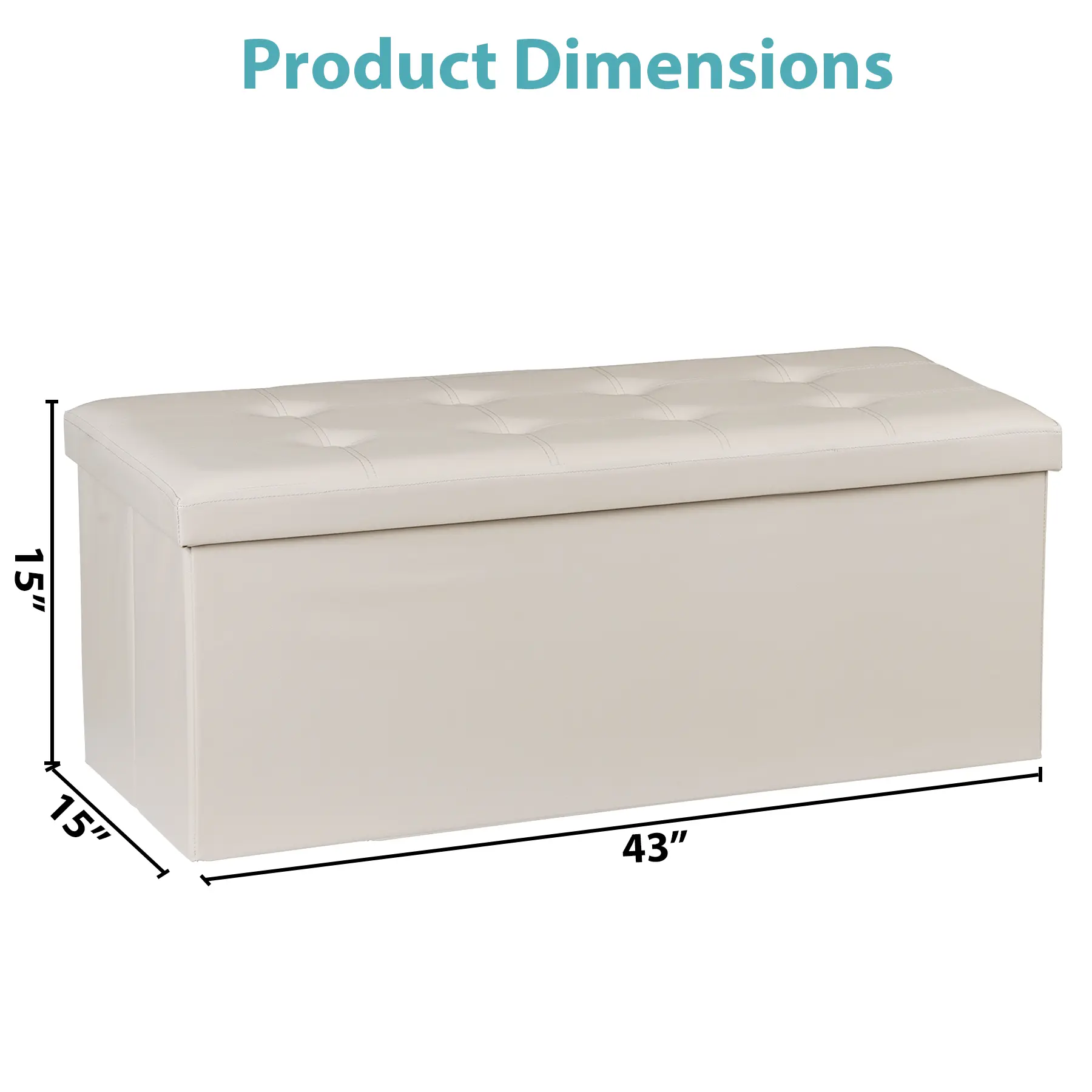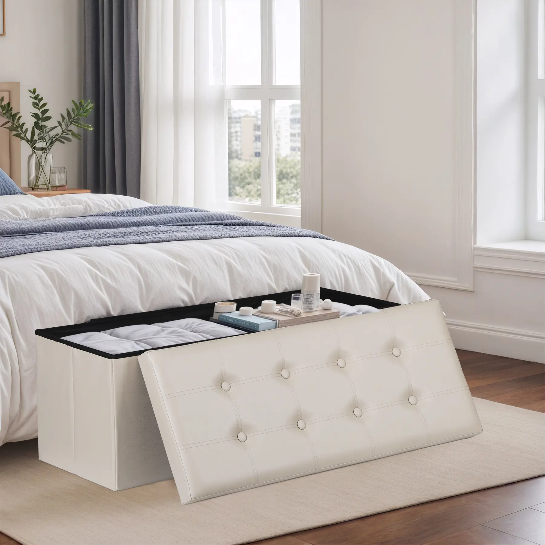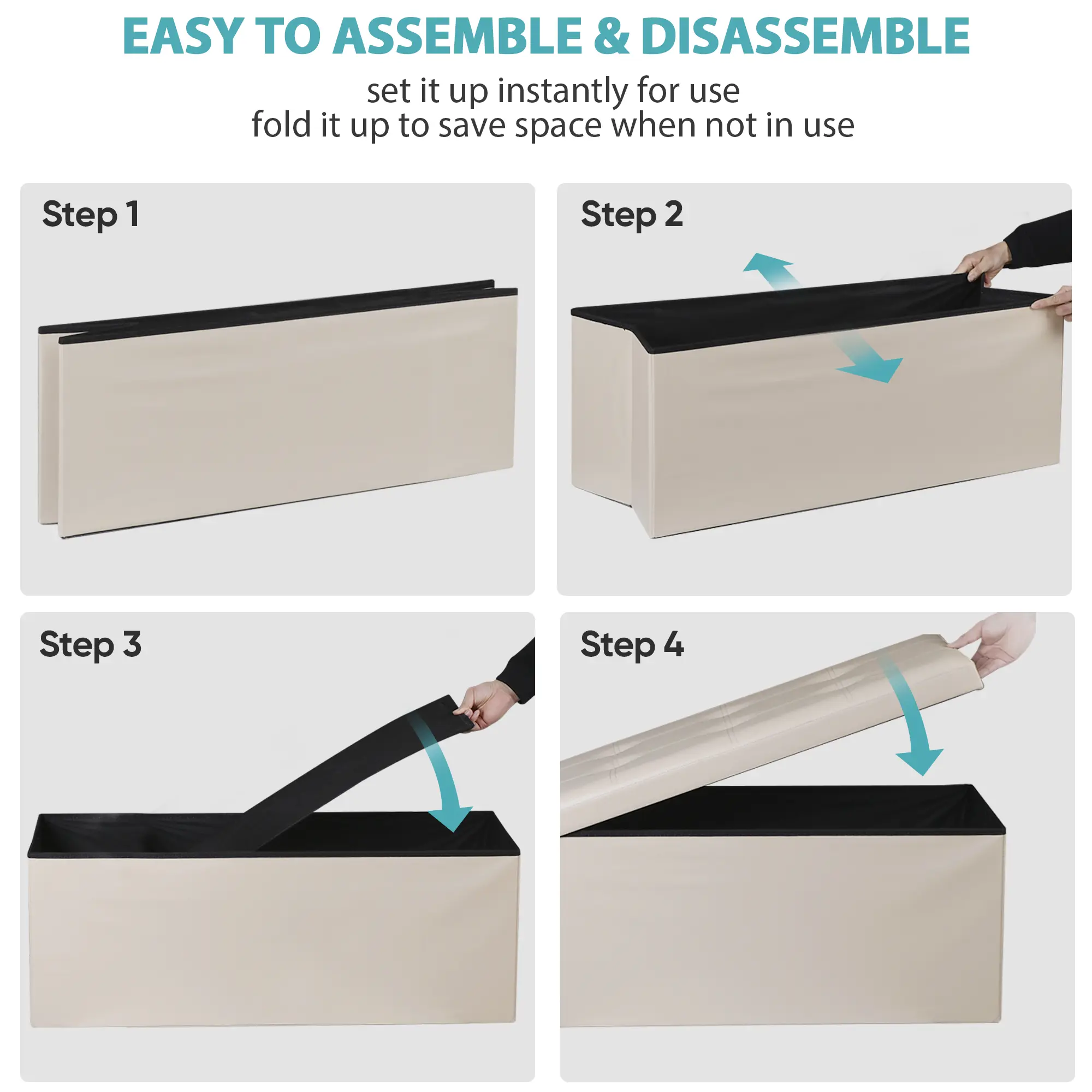 The collapsible design makes our storage furniture easy to use and store. Fold it flat when not in use to save space. The PVC leather surface is waterproof and easy to clean.