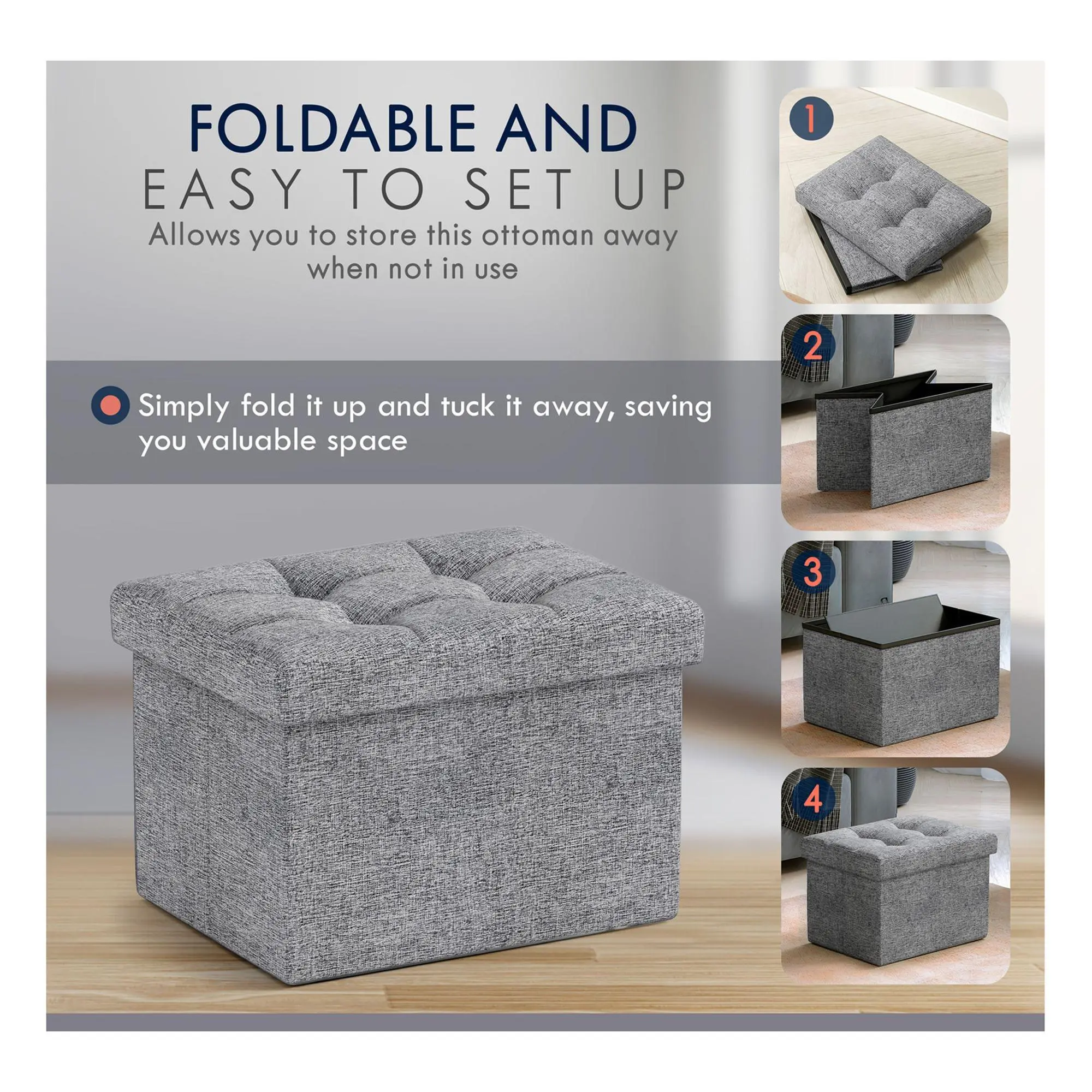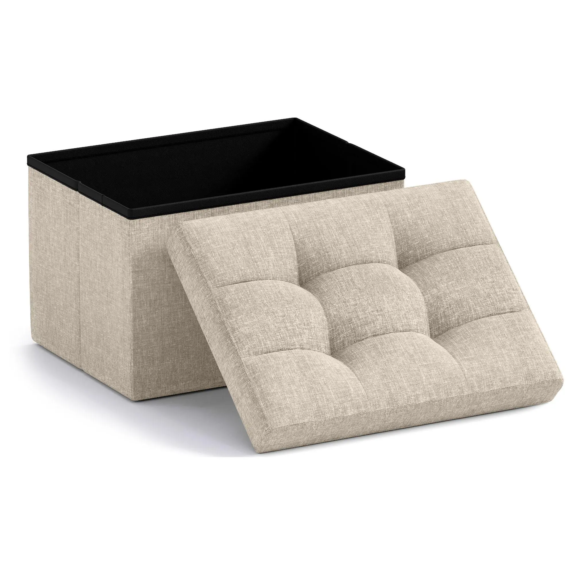 Ornavo Home Small Foldable Tufted Linen Storage Ottoman