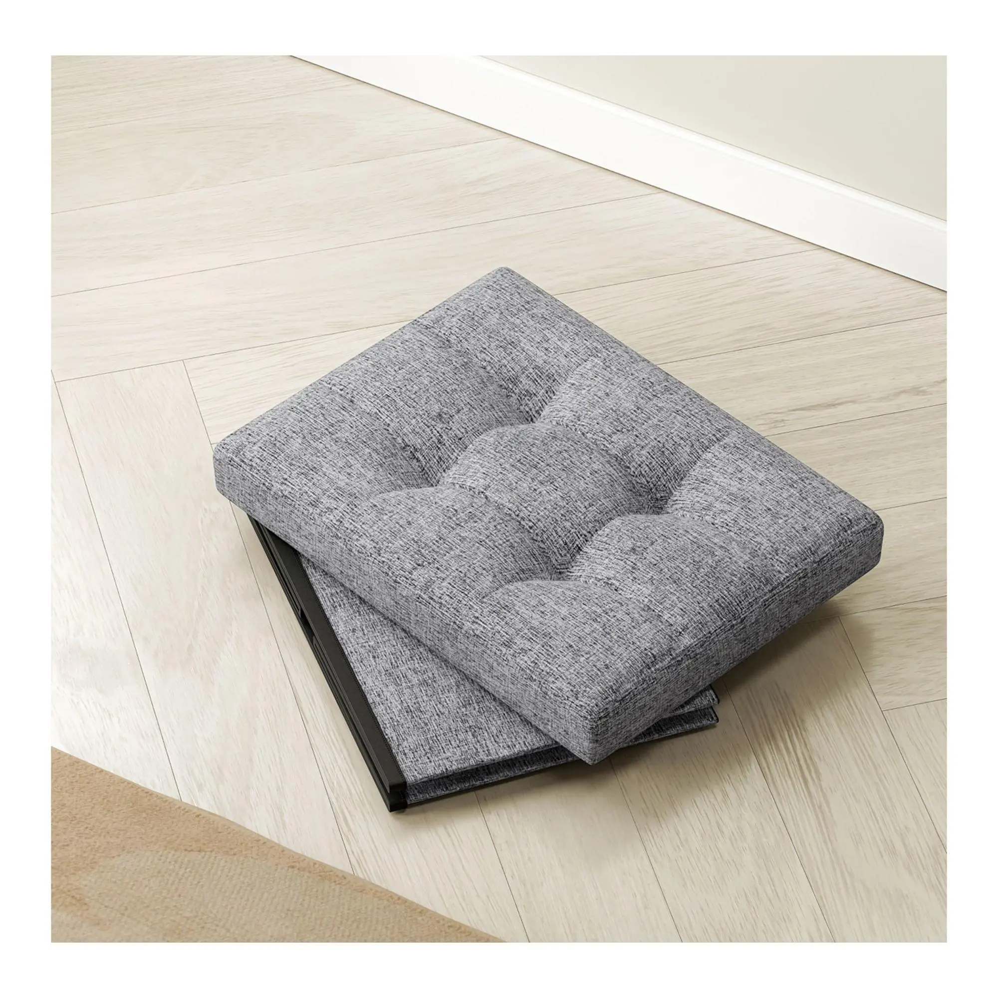 5. Ornavo Home Small Foldable Tufted Linen Storage Ottoman