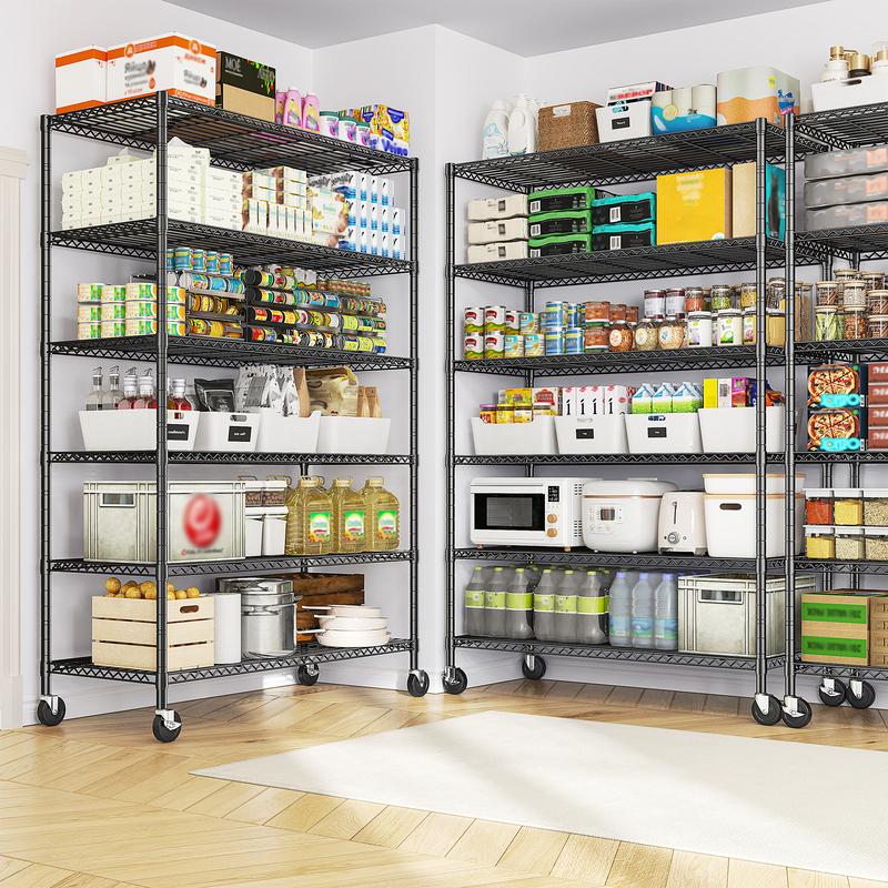 ·【Raybee Wire Shelving with wheels】- Commercial Pantry shelve with 4 adjustable base and 4 rubber wheels .The shelves move easily on wheels(3" rubber wheel can removable),The rubber material enables the shelving to be pushed without noise.