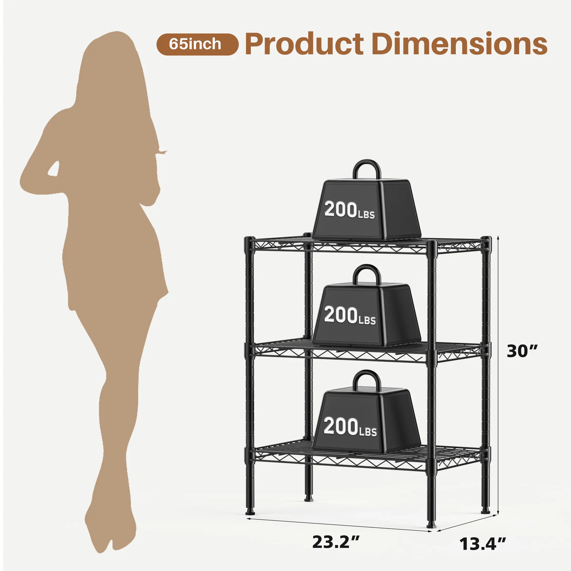 【Wide Applicability】The rack shelf is equipped with rubber feet to protect the floor from scratches, increase stability, and prevent sliding. This storage rack has a wide range of applications and can be used in various environments, including living room, kitchen, garage, laundry room, bathroom, closet shelves etc