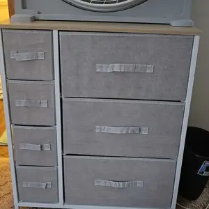·ROOMY STORAGE SPACE- The fabric dresser tower can stash dresses, socks, pants, shirts, etc.; Sizeable top grants all the surface area you need to display framed photos, lamps, and potted plants