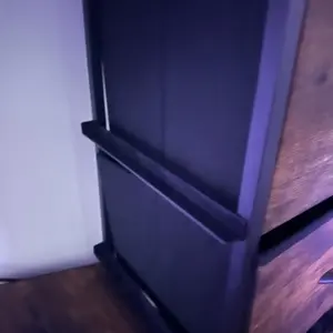 Arrived damaged. A hole wasn't properly made so I wasn't able to secure the bottom corner. There was a missing screw for one of the handles and all of them are wobbly even after tightening screws as much as I could.