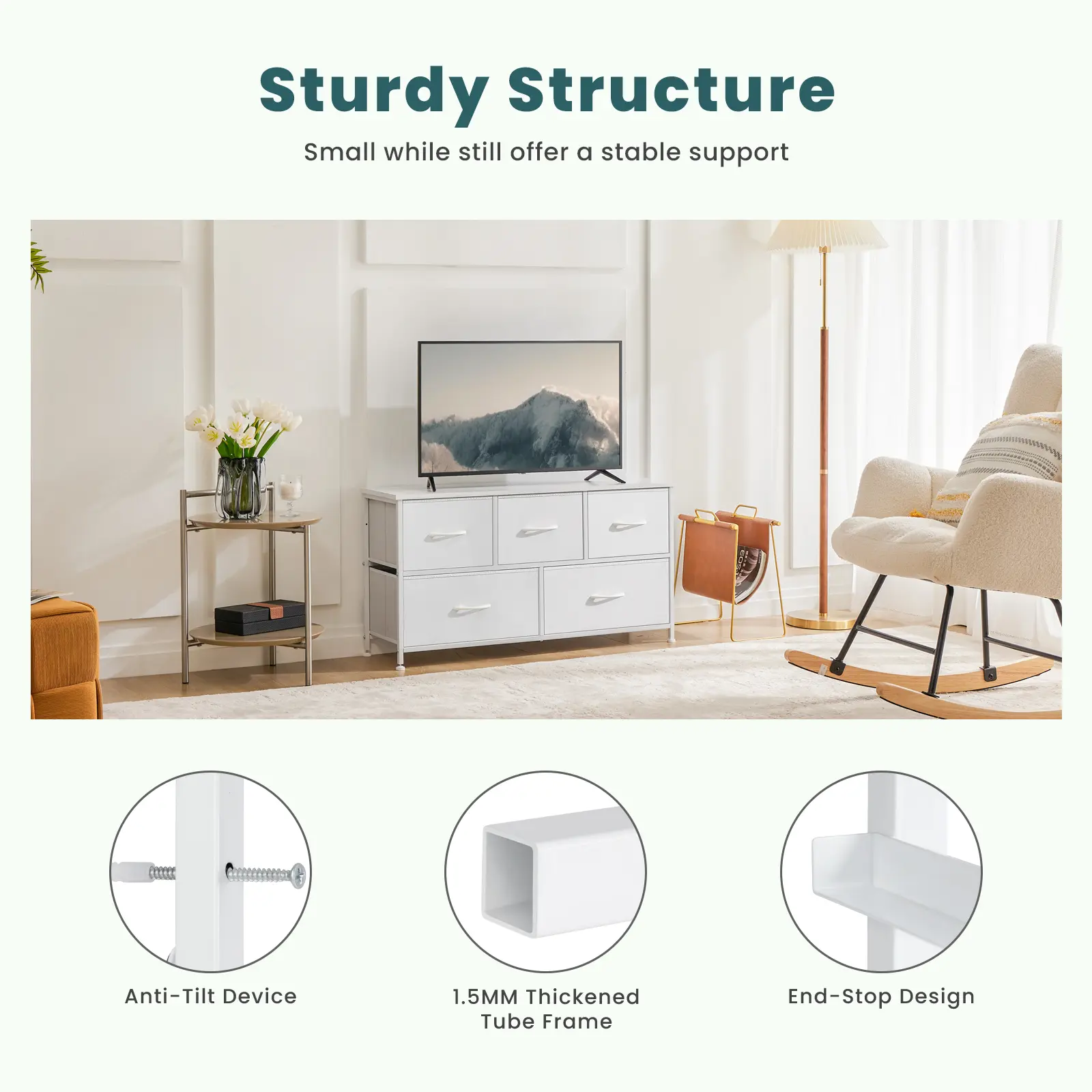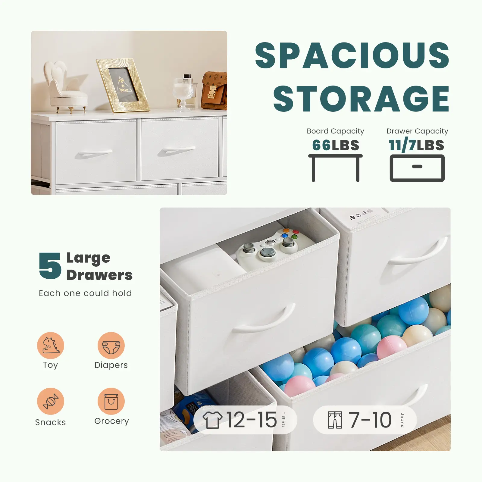 ·The large drawer can store at least 16 adult T-shirts or 10 jeans.