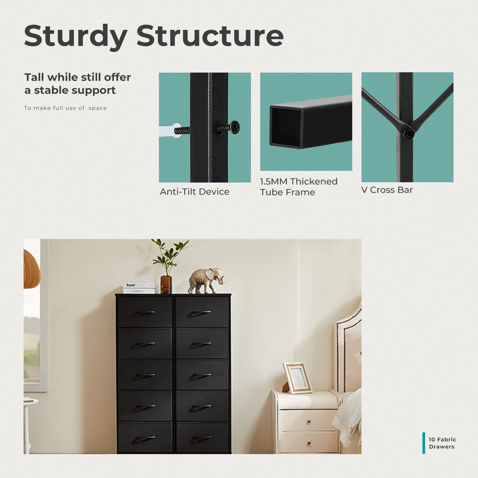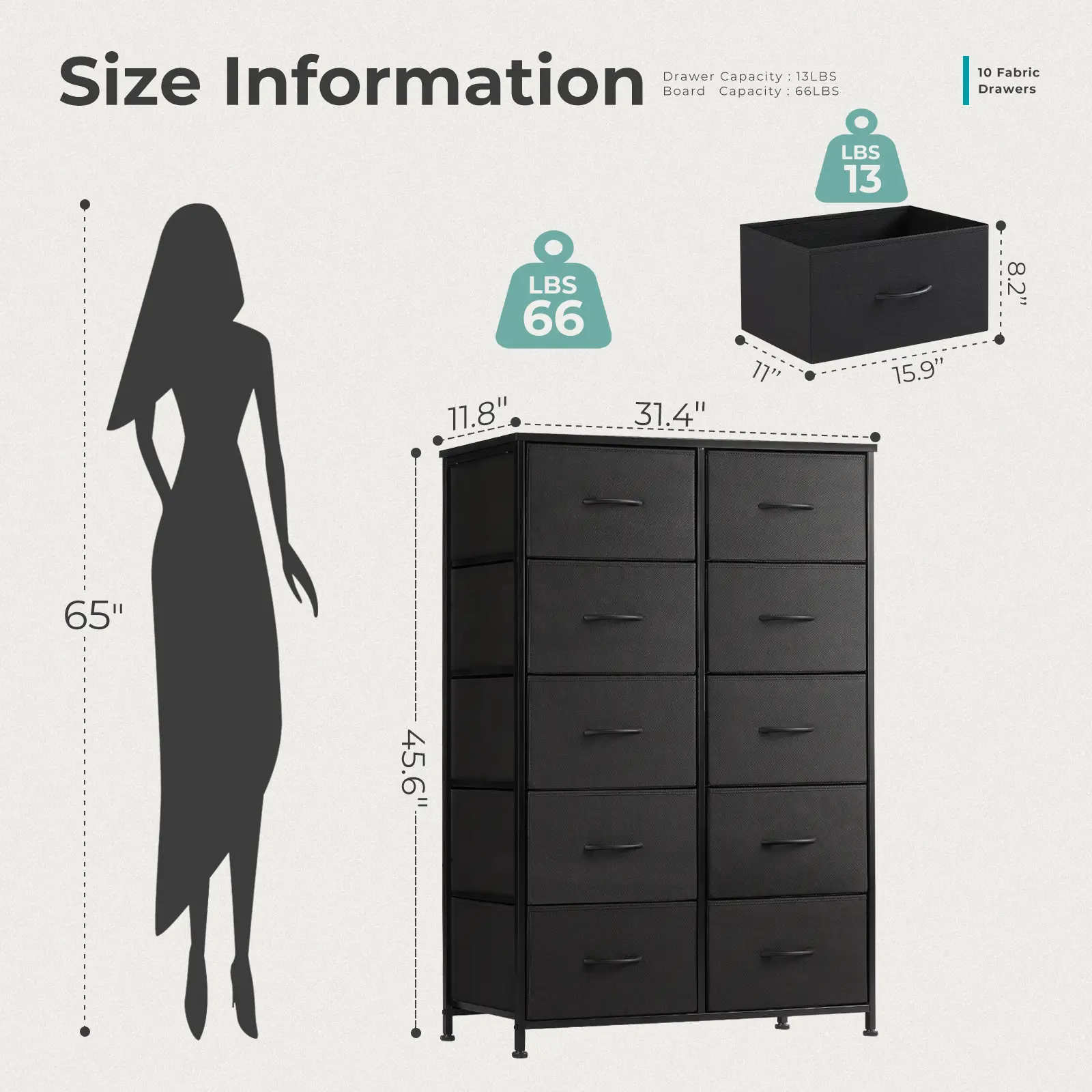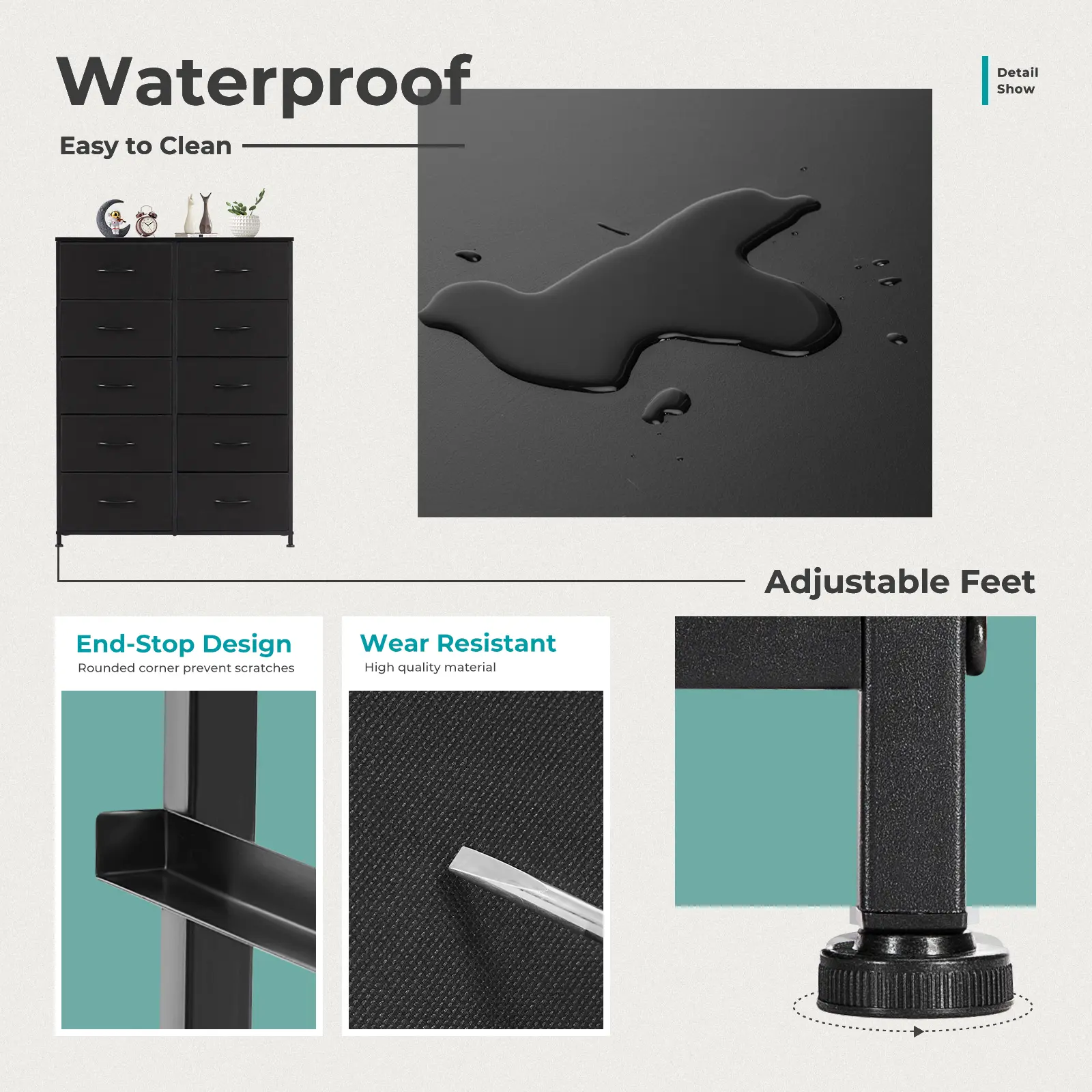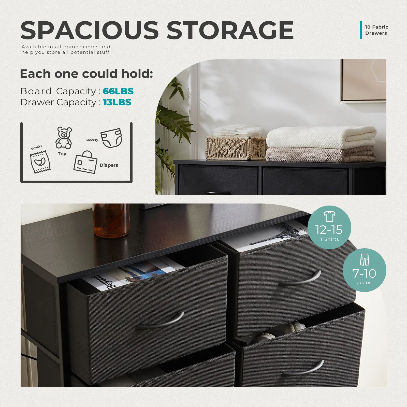 ·【Large Capacity】10 drawers are to satisfy various storage needs. The wooden top is great for keeping the most-used items within your reach. With plentiful space to organize all your belongings, your room will always be kept in perfect order.