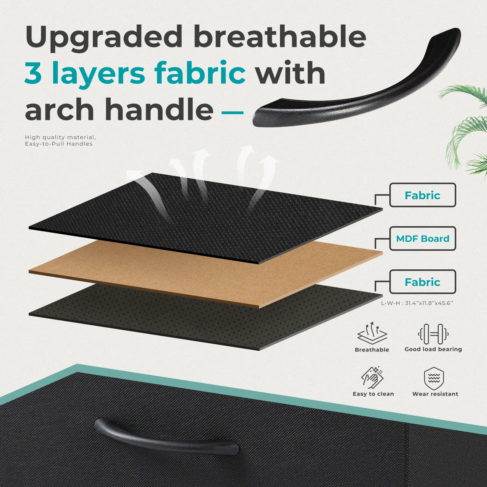 ·【Quality Construction】This fabric dresser combines water-resistant MDF board with a durable steel frame. a cross support bar to make it sturdy under load 66lb. Anti-tipping accessories are also equipped to prevent accidents. With 4 adjustable feet, you won’t have to worry about stability, and it is also adaptable to different spaces.