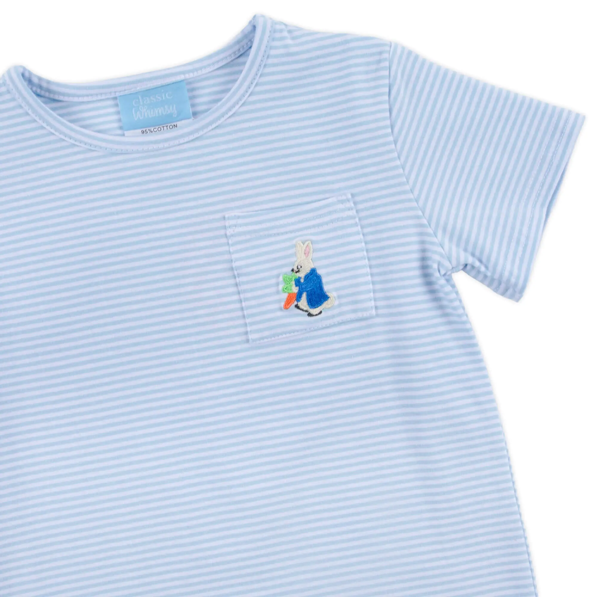 Storybook Rabbit Embroidered Light Blue Short Sleeve Pocket Shirt - Cute Boys Easter Outfit