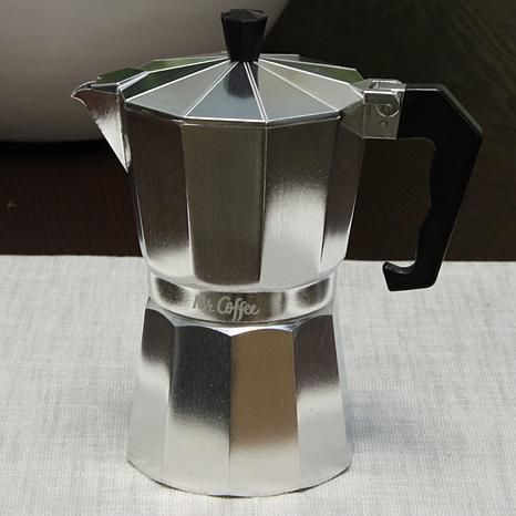 Mr. Coffee Brixia 3-Piece 6-Cup Stove Top Expresso Maker Mr. Coffee Brixia 3-Piece Stove Top Espresso Maker brings authentic café charm to your kitchen. This item has a 3-piece aluminum body and filter system that brews the stove-to-table espresso for coffee enthusiasts. It's simple to use, easy to clean and so compact that it's even ideal for camping. This six-cup espresso maker is also an excellent solution for compact living spaces or making just enough espresso for a small group of guests. If you are looking for a simple, practical and affordable espresso maker, this item is an excellent choice.