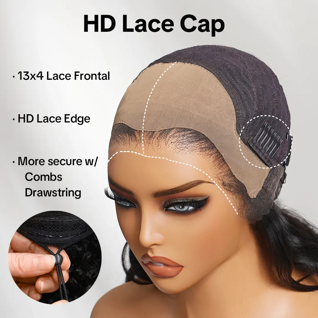 BEST BANG WIG EVER! Lace is flawless, soft hair w/ no smell, & it’s SECURE w/ that drawstring. I’m 5’5 & this wig definitely gives a longer length. The bangs are long, so trim a bit. Only returning because the bangs don’t fit me personally, but if bangs are your vibe, it’s definitely worth it!