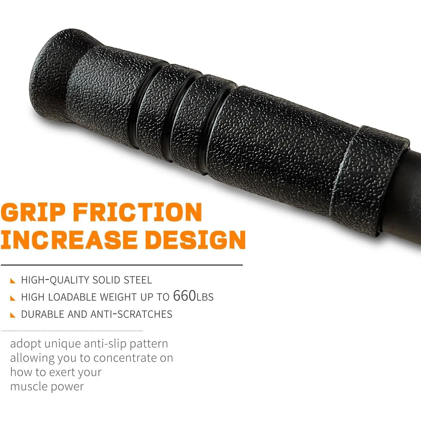 【BLACK PROTECTIVE COAT】Coated with black , the machine attachment is durable and anti-. Made of high-quality solid steel, this gym bar is able to hold up to than 660 lbs weight. The 360-rotating design of the straight bar reduces maximum friction to improve your exercise performance.