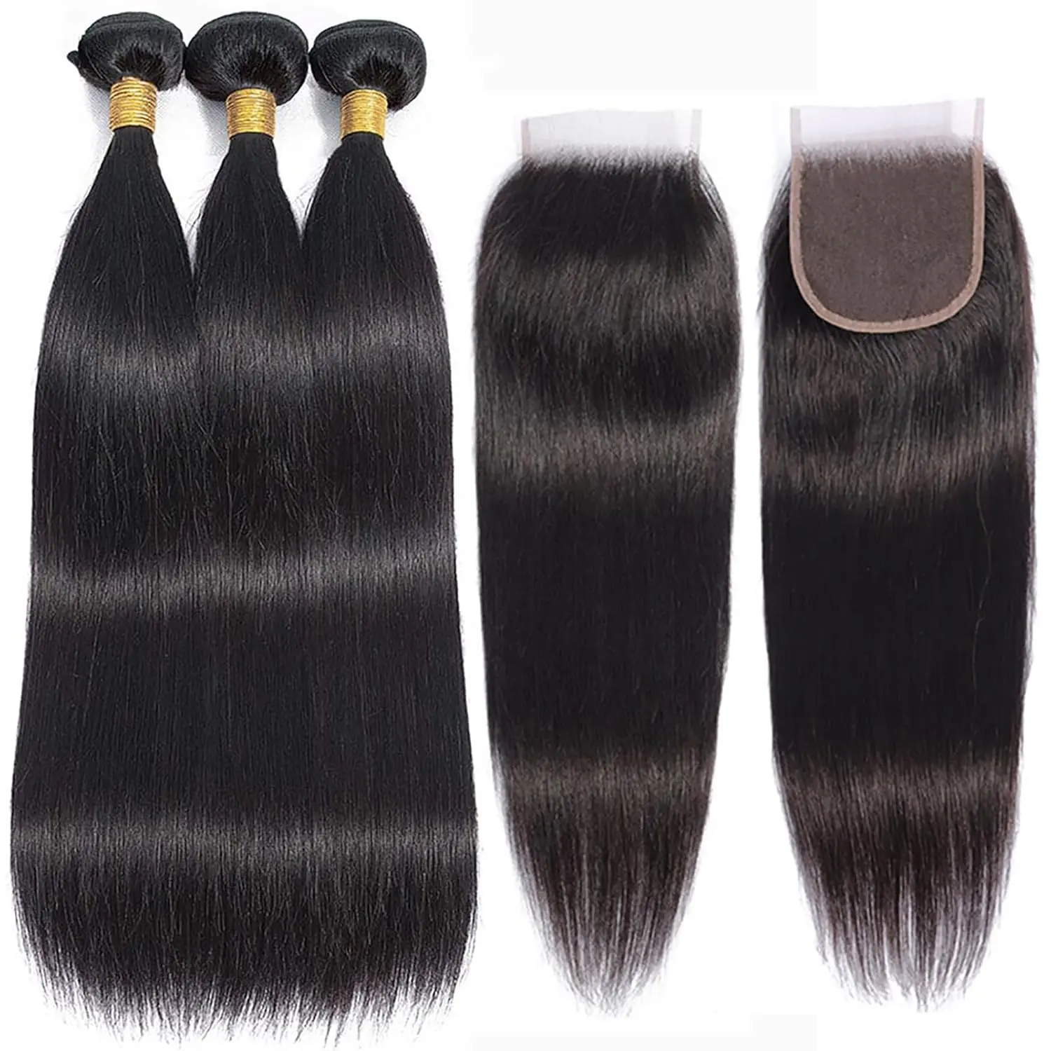 Hair Package:3 Bundles Straight Human Hair with Closure, Enough to Make a Full Head