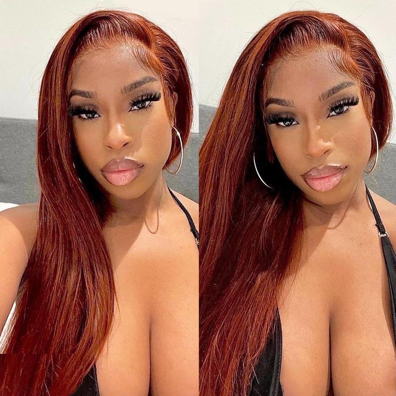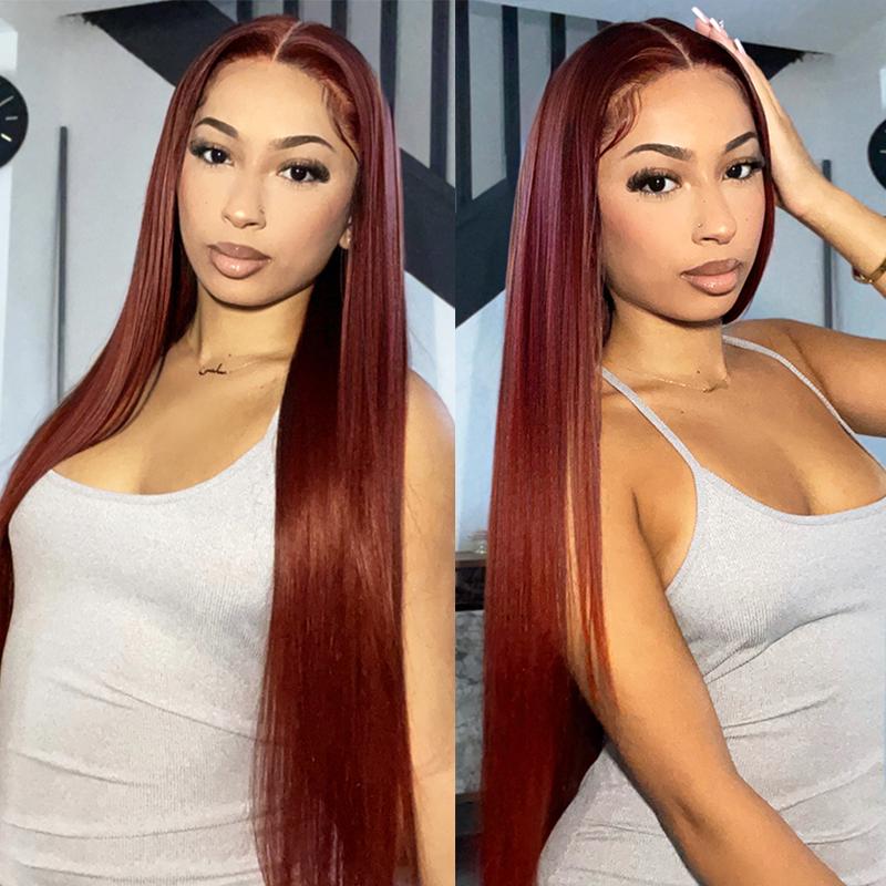 Get the perfect look with FORGIRLFOREVER #33 Reddish Brown Wig 13x4 Straight Lace Front Wig, made with pre-plucked lace frontal human hair. This wig is heat resistant and comes in a beautiful reddish brown hair color, making it the perfect choice for any fashion-forward female.