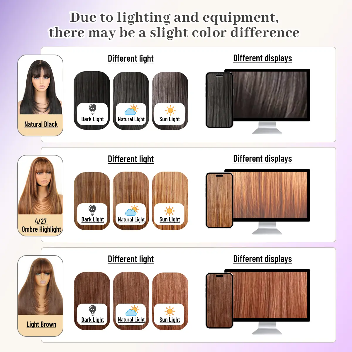 All images on this page are actual product photos. Please note that due to lighting conditions (such as natural light or indoor light) or differences in the color gamut of monitors (phone/computer), the actual color of the wig may slightly differ from the picture.