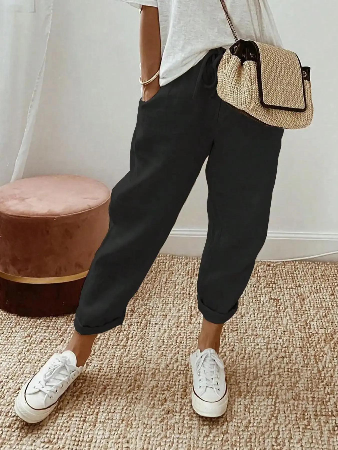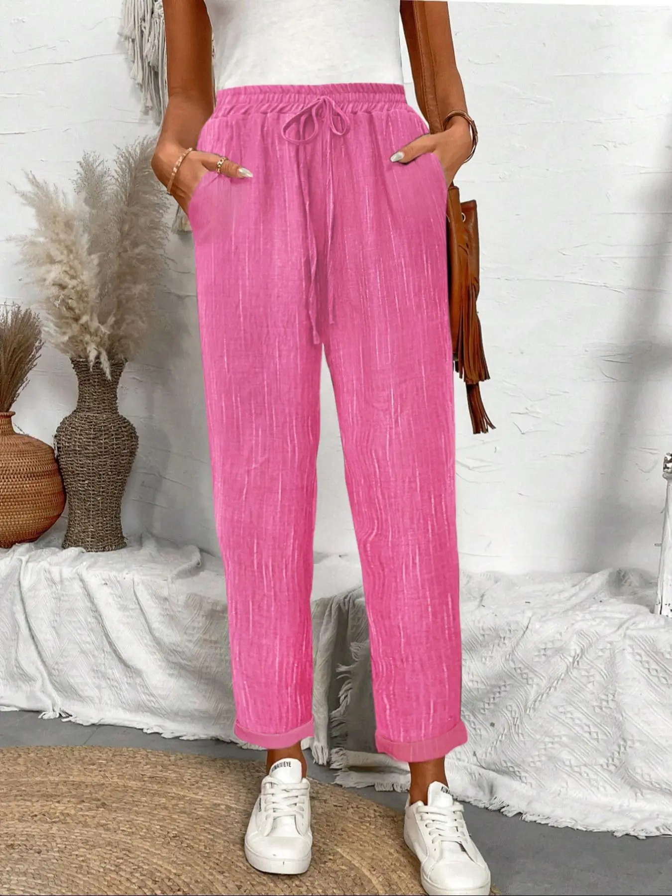 You get what you pay for… low quality, drawstring merely sewn on offers nothing. Also not at all elastic on the ankles like a jogger. Just straight fabric sewn with an elastic waistband and a drawstring attached. Will be putting in the donation pile.
