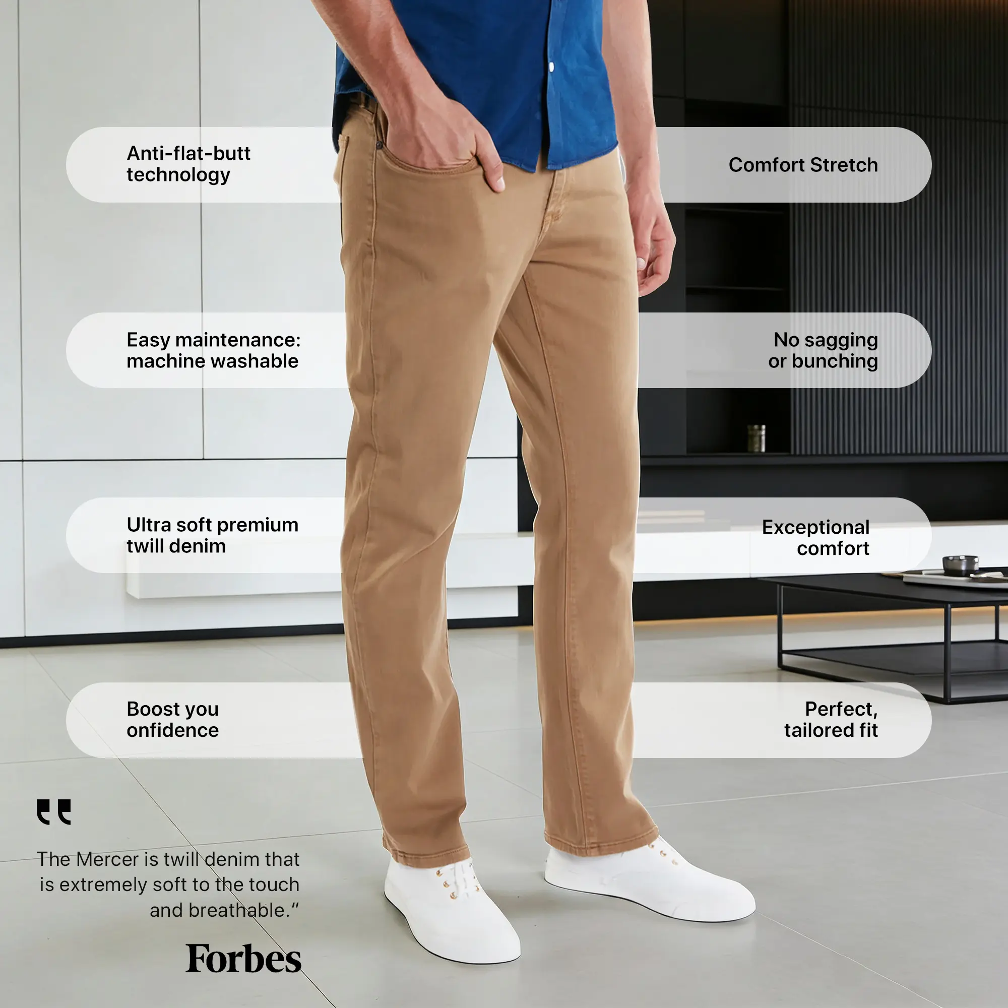 - Comfort Stretch: 25% Stretch Factor