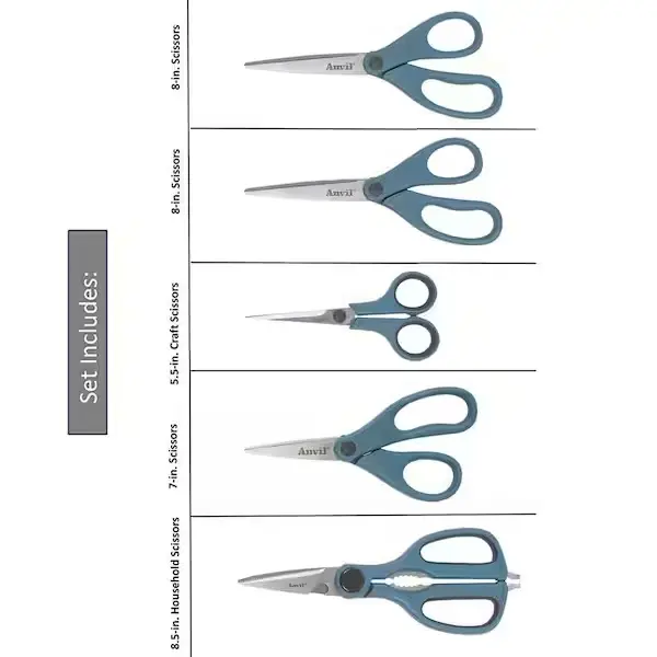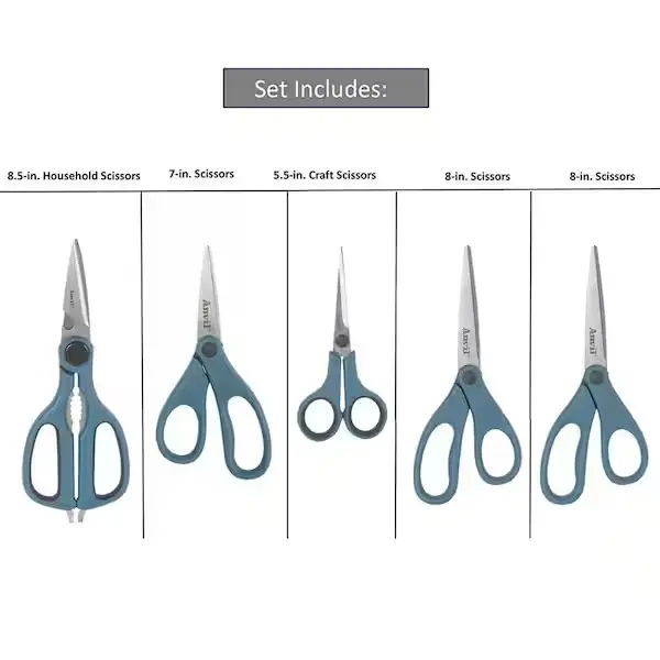 Straight Scissors 5-Piece Set - Precise & Clean Cuts for Paper Fabric & More - Versatile Home & Professional Use - Compact Design for Easy Storage