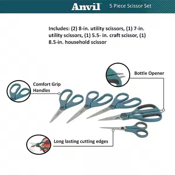 ·📏 This 5-piece set includes five straight scissors, ideal for diverse cutting tasks. Each pair features a straight design, ensuring precise and clean cuts. 🌟