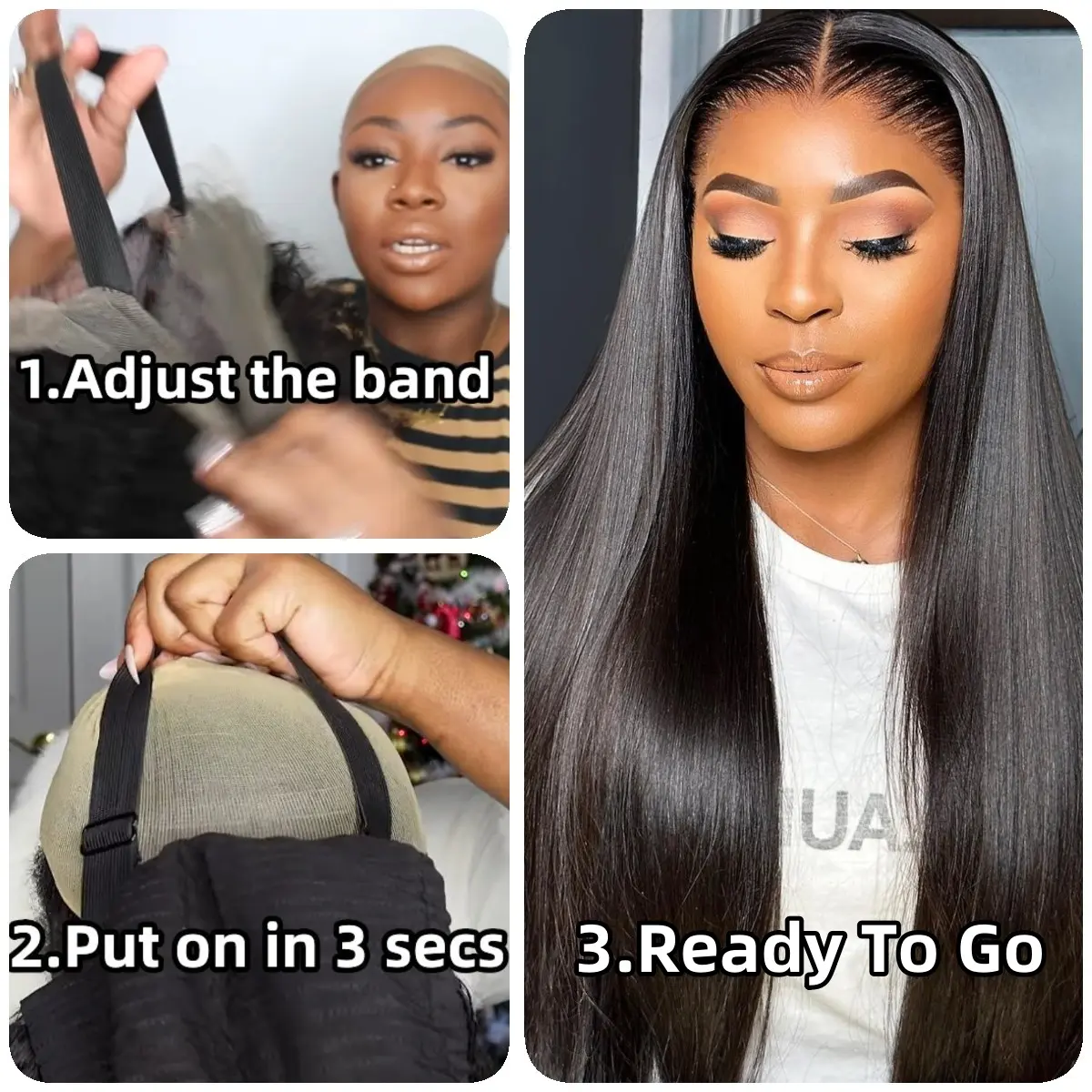 The wig I received wasn't the wig shown here, advertised. And it has some flaws. I made it work. It's really nice. No shedding really. The tangling is very minimum. I am giving it 5* because I enjoyed it no matter what. It's was fun as demonstrated in the video. I love the adjustable straps.