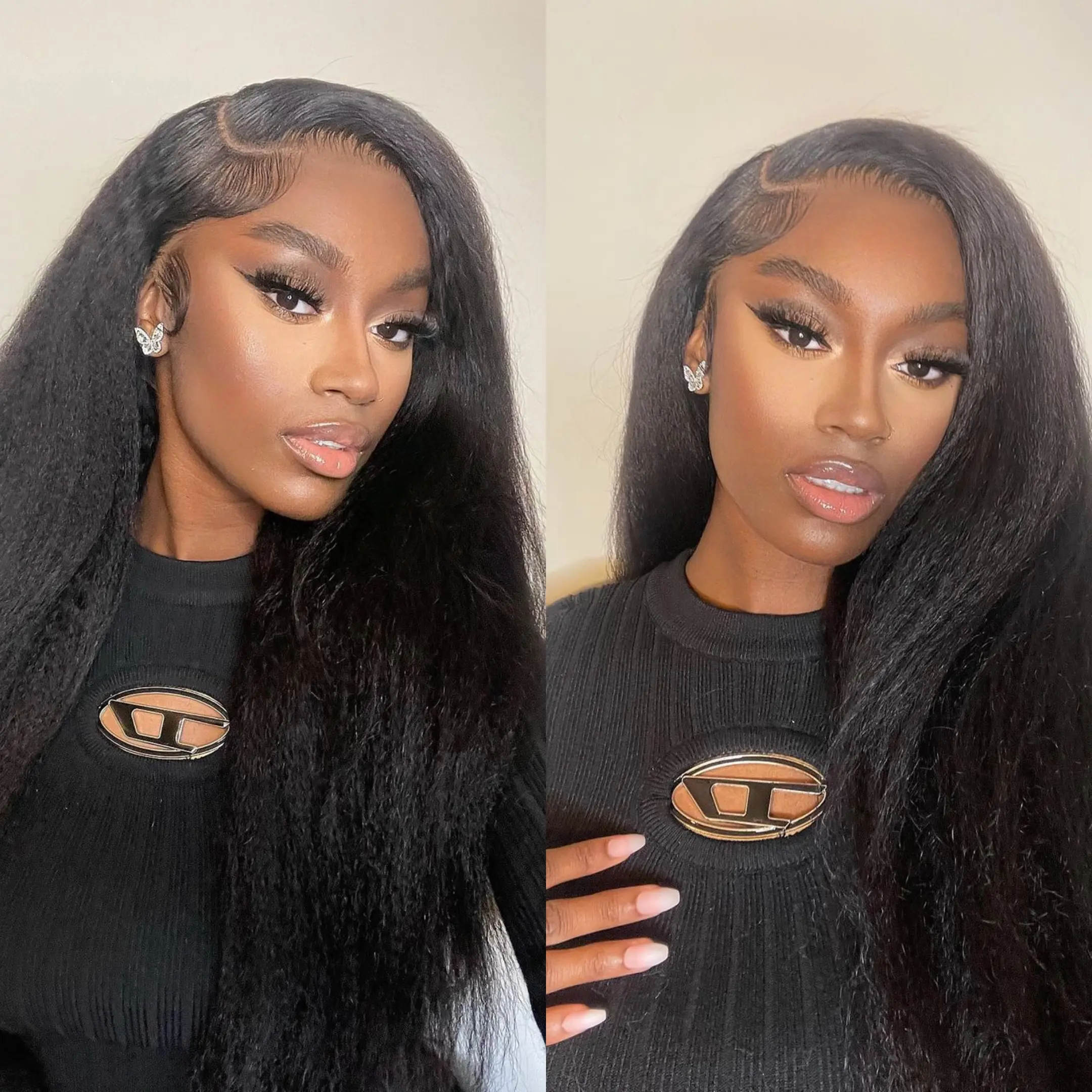 I love the texture, this wig is super soft 🥰. It definitely gives kinky straight so if you want a natural blow out look, this is the one.