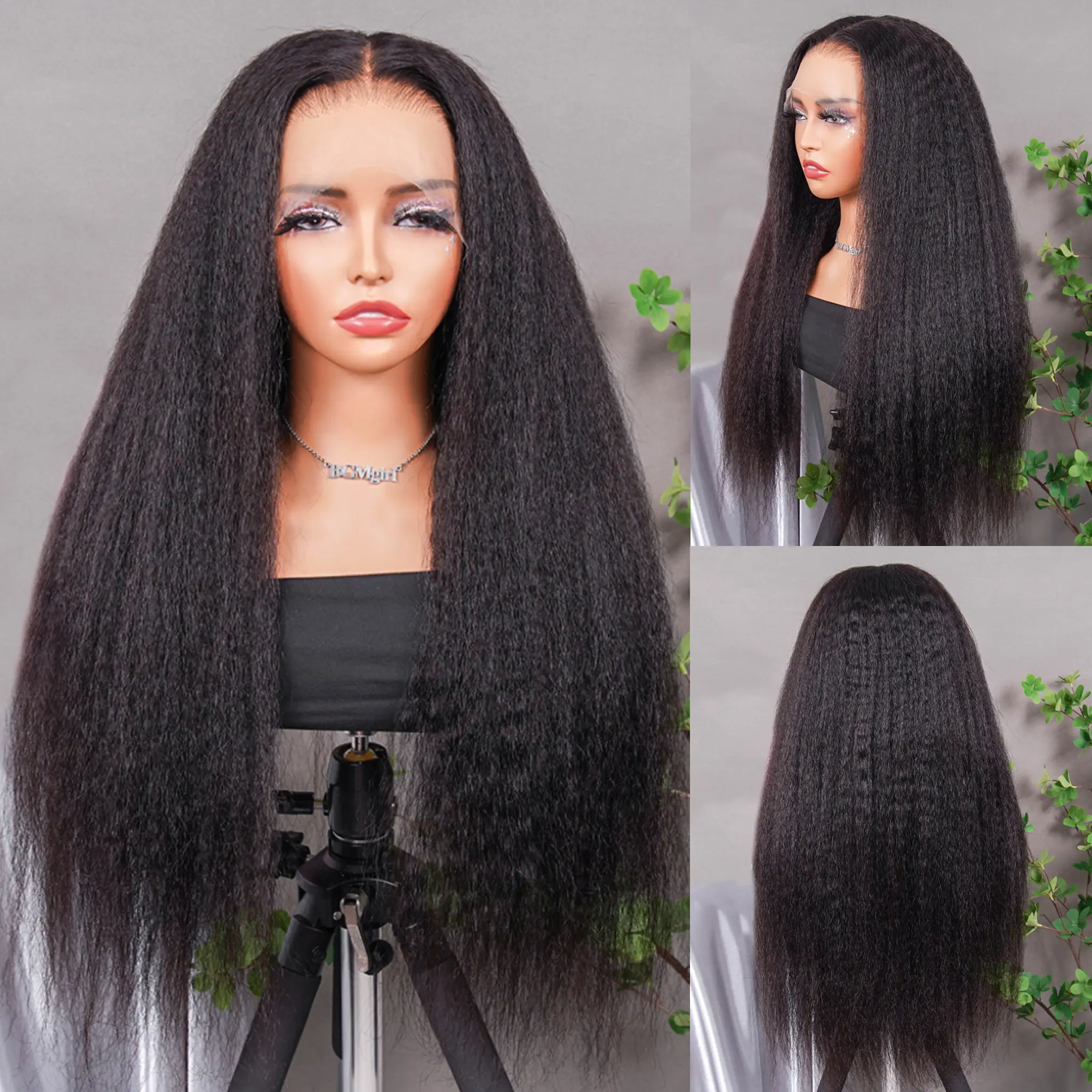 [Clearance Sale] BGMgirl Kinky Straight Pre Bleached Knots 13*4 HD Lace 250% Density Front Wig Pre Plucked Natural Hairline Human Hair Wigs Medium Size Cap TikTokShopBlackFriday