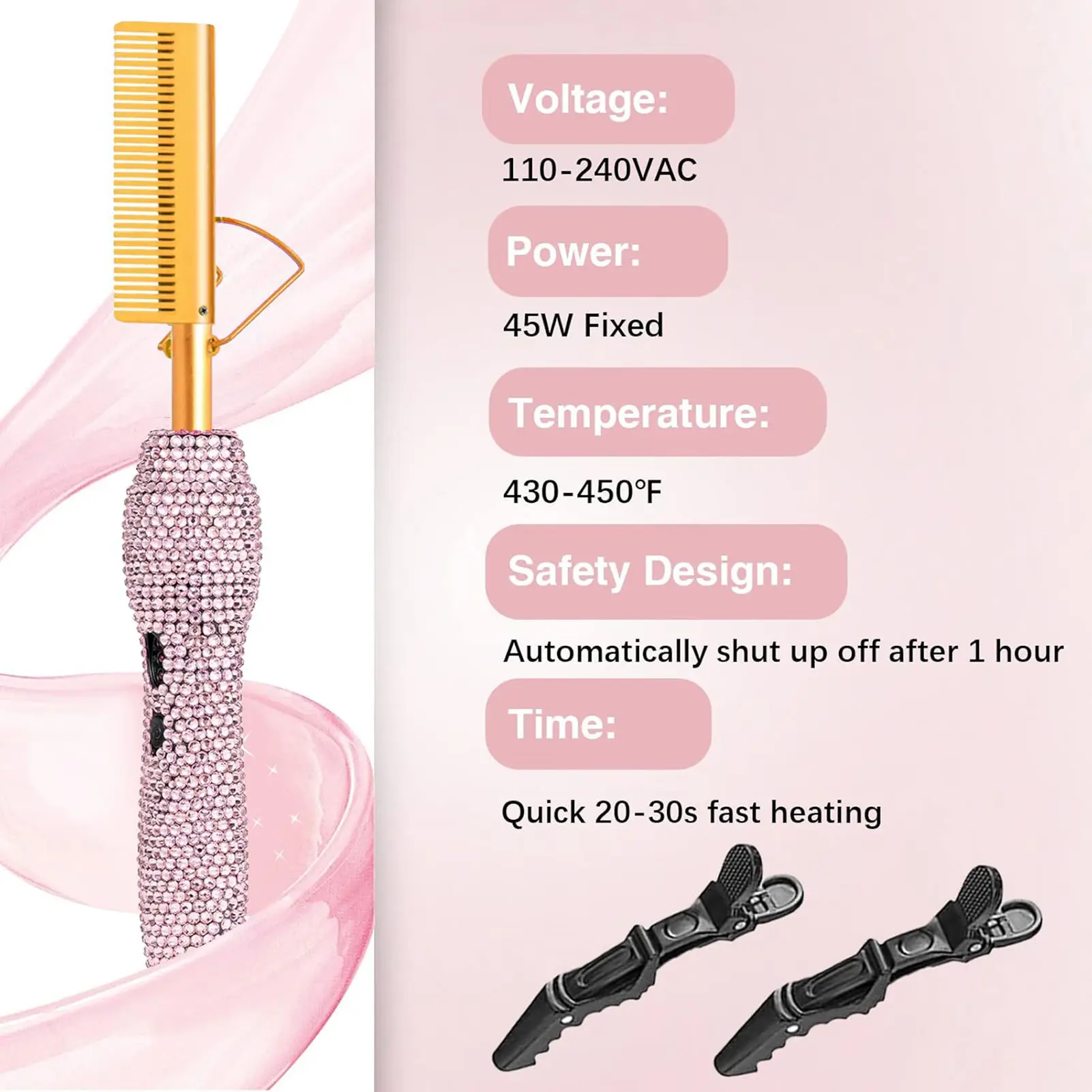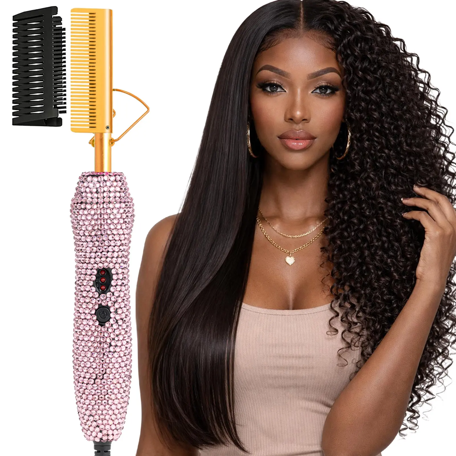 ·【Temperature Adjustable】The hair straightener has three levels of temperature adjustment: low/medium/high, the temperature can be between 430-450℉, you can choose the right temperature according to different hair quality. Hot comb electric for wigs fully meets the needs of your life!