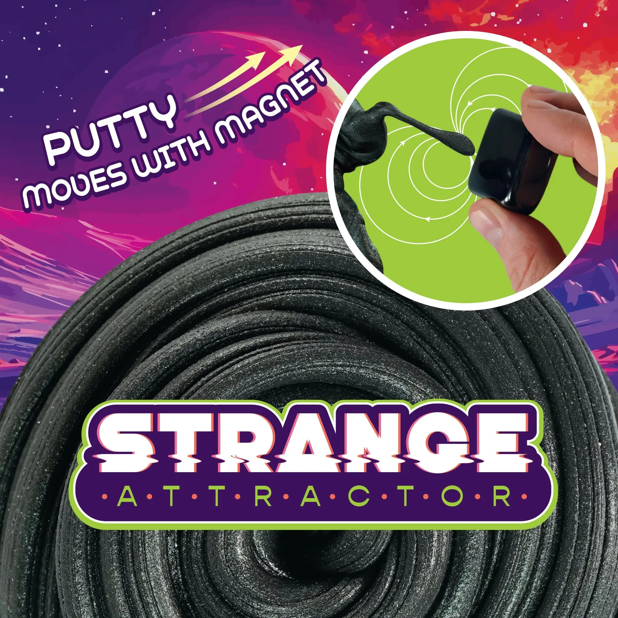 Strange Attractor Thinking Putty® has a mind of its own as well. A deep, mysterious black with subtle green sparkles, it comes alive when charged with the included magnet.