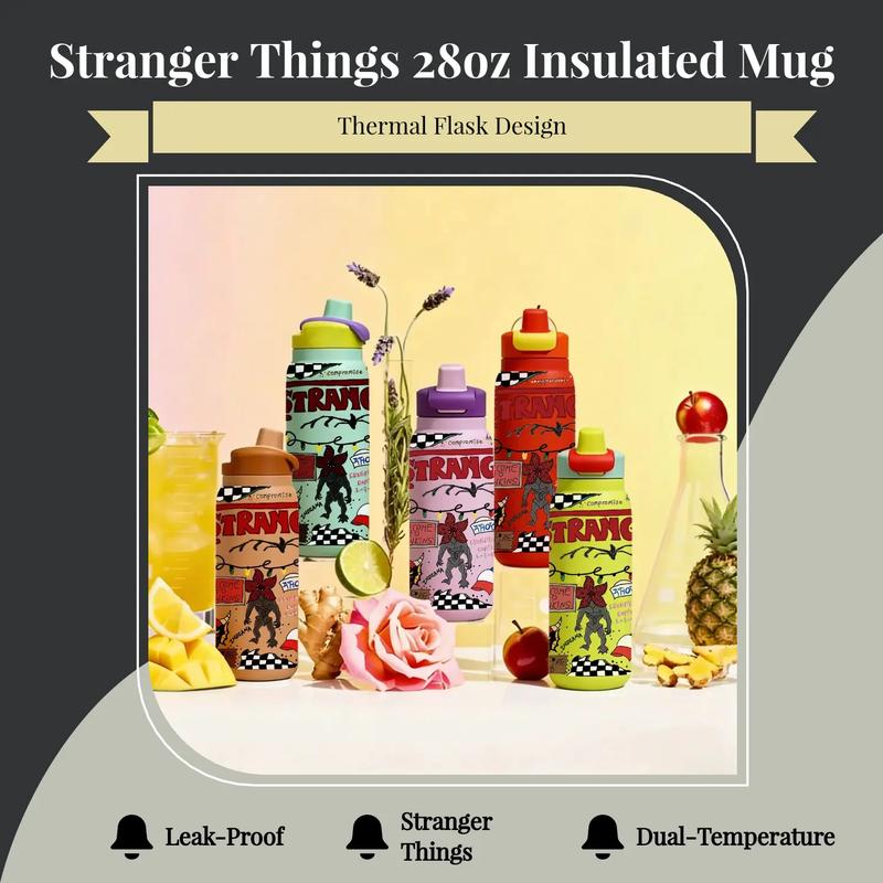1 Pc 28oz Insulated Mug, Stranger Things Theme Vacuum Cup, Double Wall Thermal Mug, Leak Proof Skinny Insulat Cup, Keeps Hot 12 Hours Cold 24 Hours, Stainless Steel for Hot Cold Drinks, Vacuum Insulated Flask, Daily Use Gift for Women Men Holiday Festival