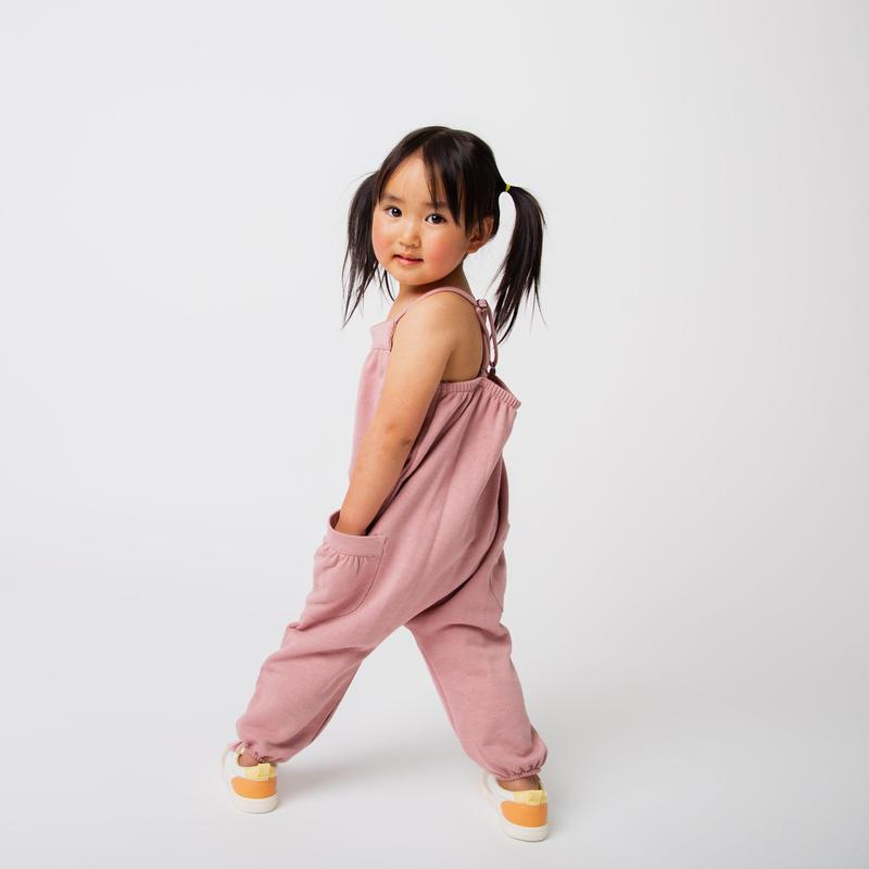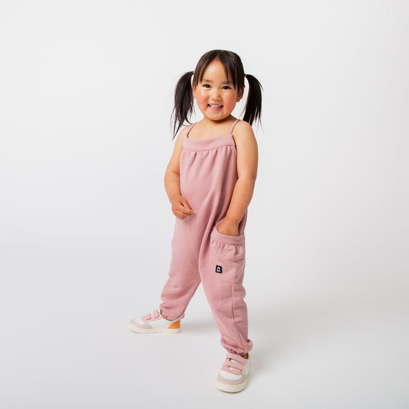 Brighten up your little one's wardrobe with our Strappy Jumper in a beautiful blush color. Perfect for warmer weather, this jumpsuit can be dressed up or down with its adjustable straps and playful design. Available in sizes 2T - 11/12Y.