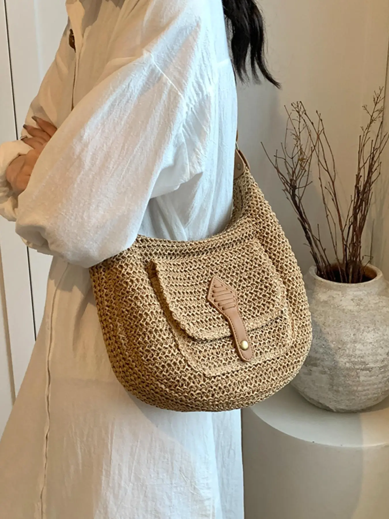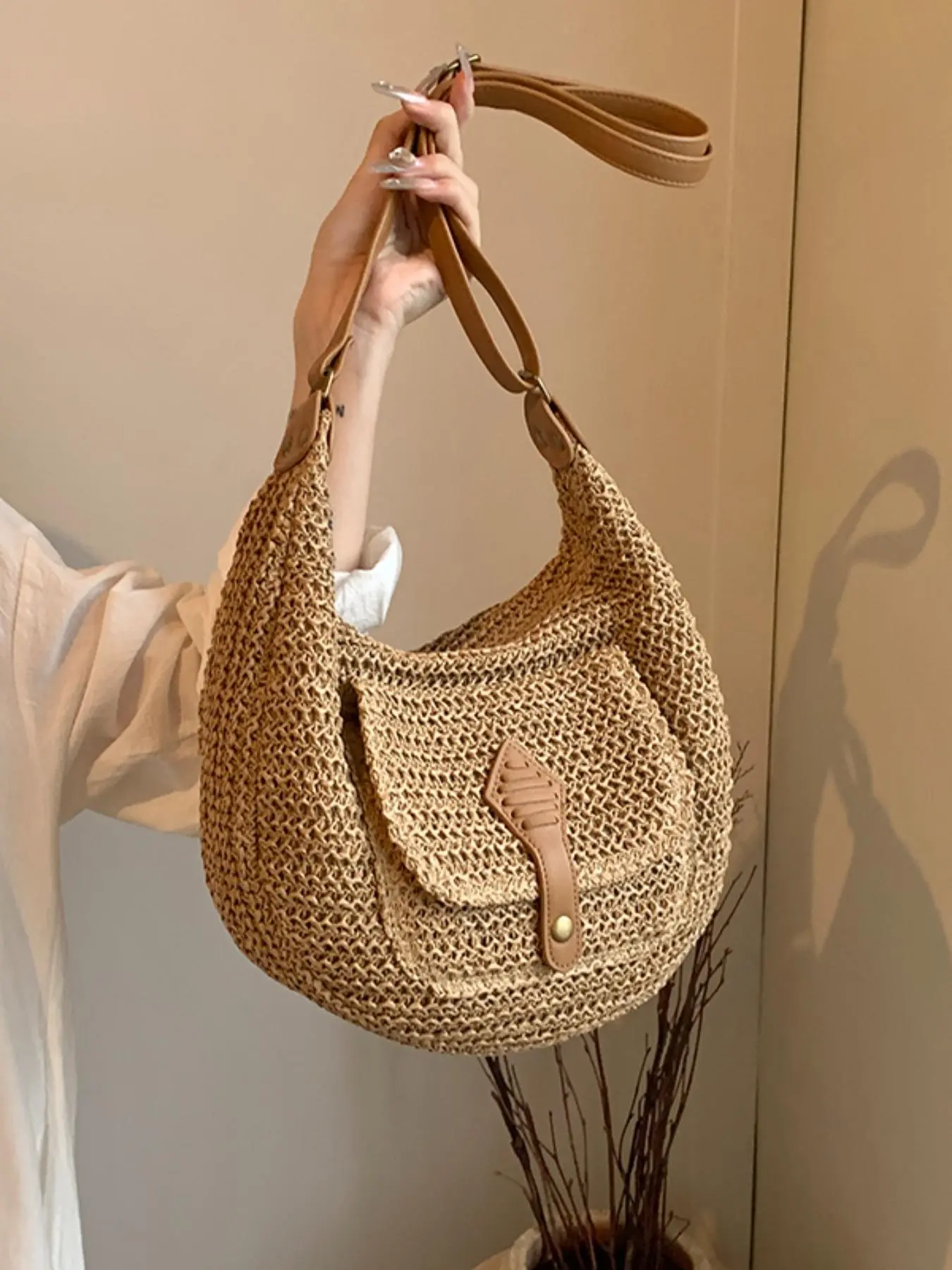 5. Women's Fashionable Straw Bag, Large Capacity Shoulder Bag for Daily Used, Casual Trendy Versatile High-quality Daily Commuting Bag, Girl Fashionable Shopping Bag, Elegant Commuter Bag