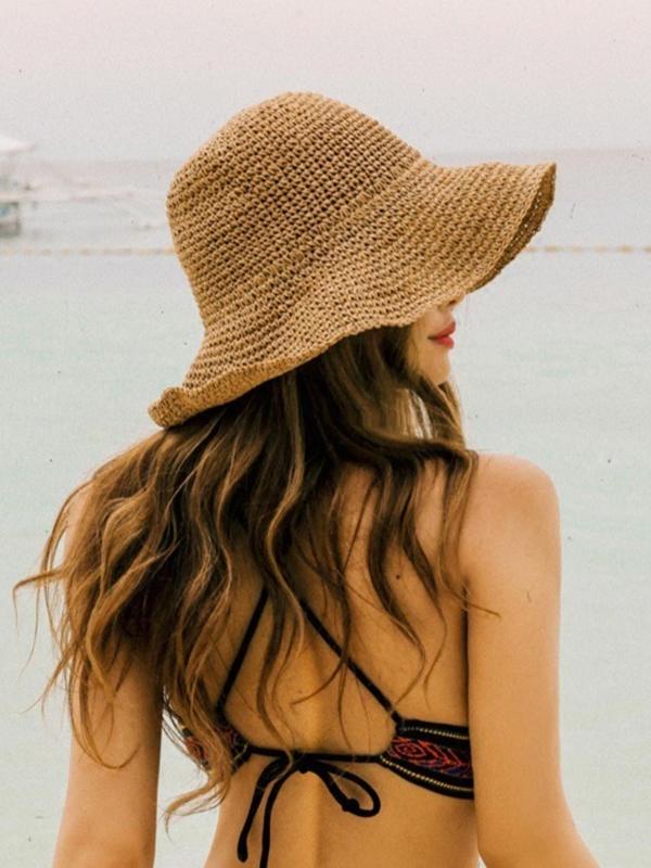 5. Women's Solid Color Straw Hat, Casual Outdoor Sun Protection Hat for Women & Girls, Fashion Accessories for Traveling & Beach Vacation