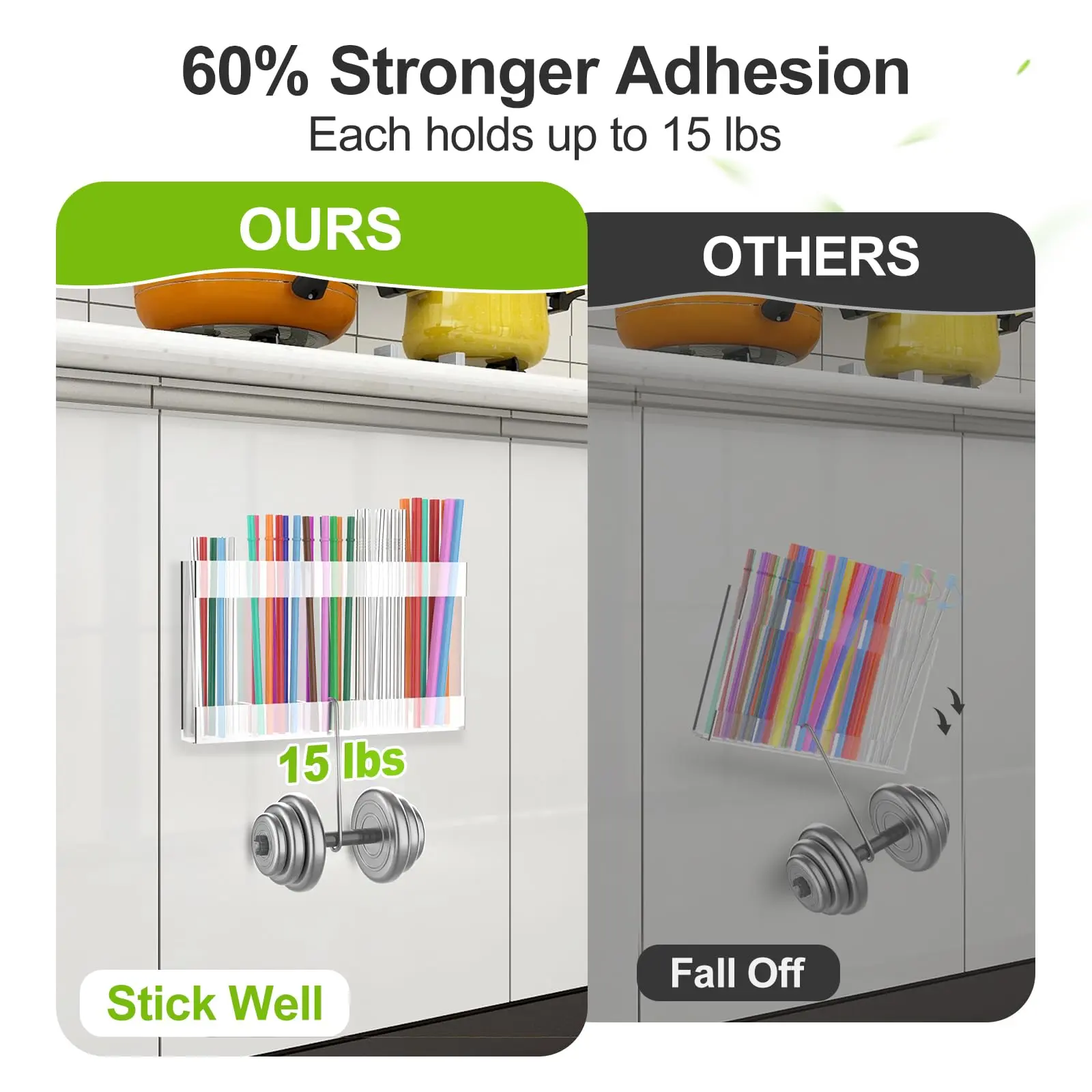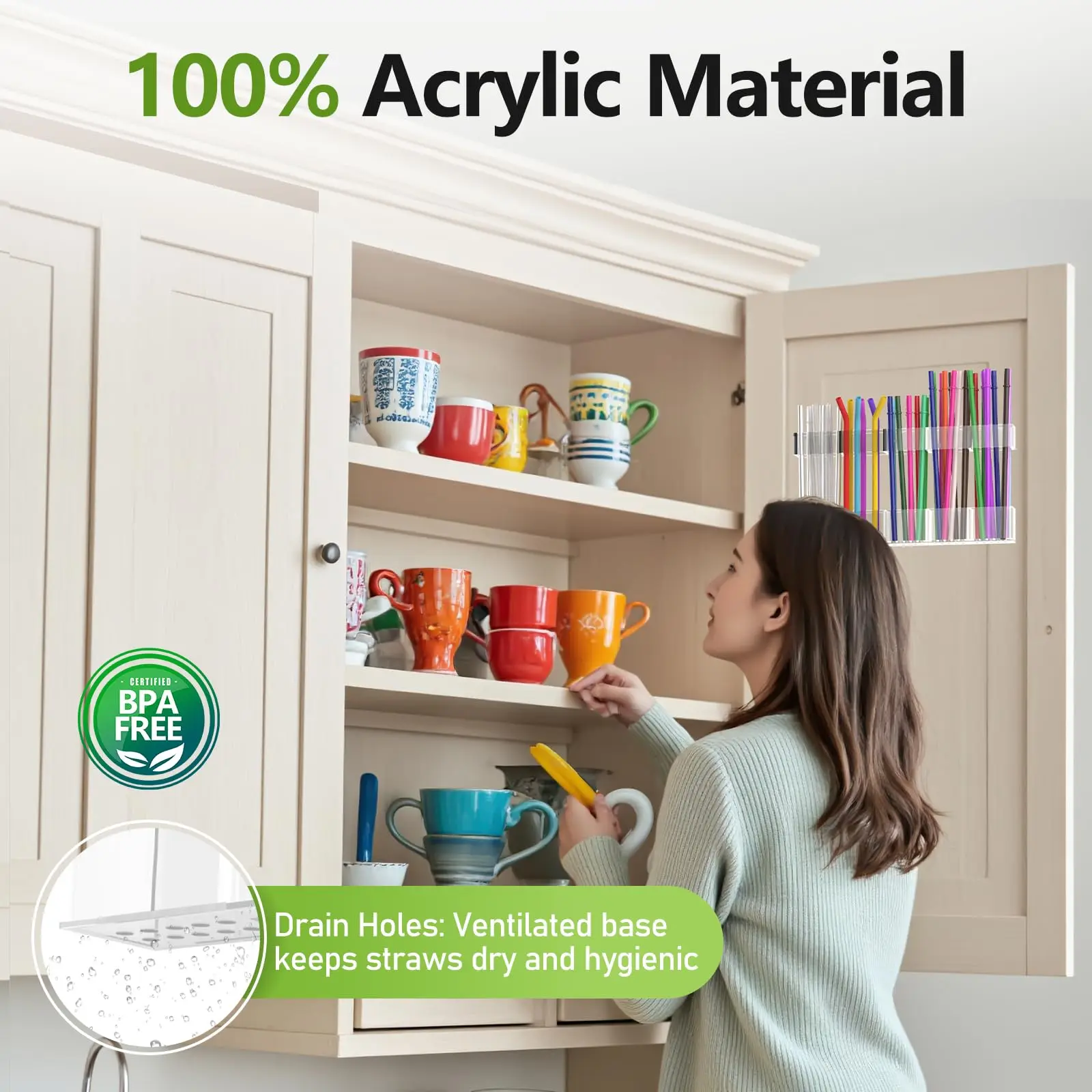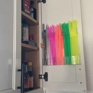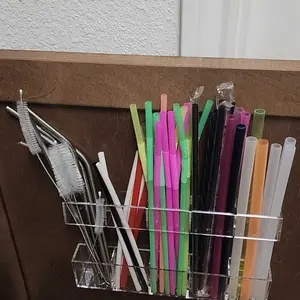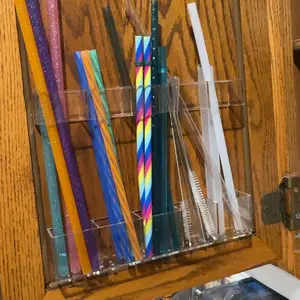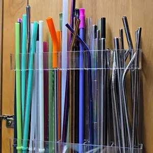 Love this straw holder! Super sturdy, the adhesive is strong, and it fits perfectly on my cabinet door. The adjustable design holds all my reusable and disposable straws with no mess. Clear acrylic makes it easy to see everything. Total space-saver!