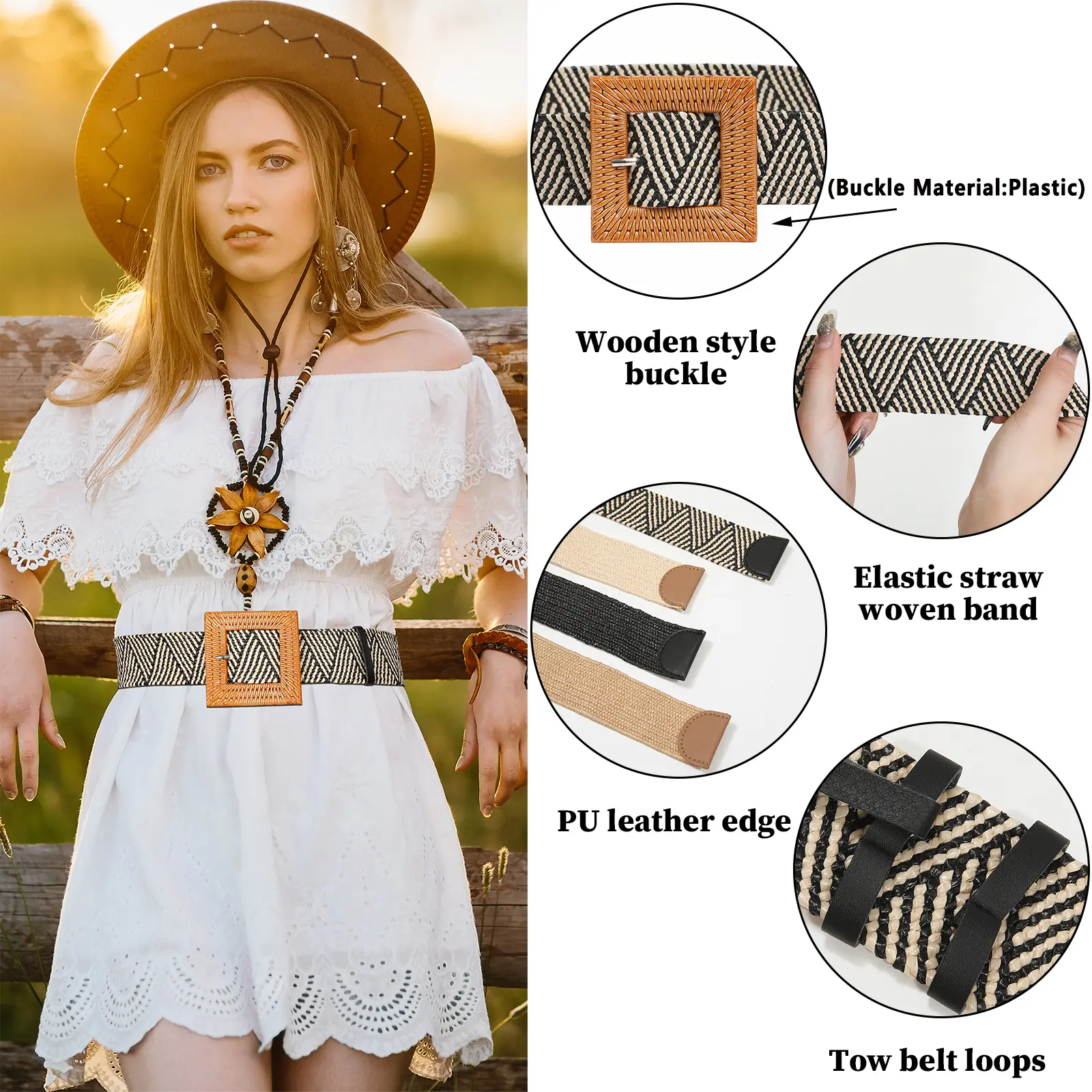 ·【Fashionable & Versatile】: Our straw woven belt for women is a stylish accessory for your everyday wear. You can use it with dresses, shirts, long coats, sweaters, evening dresses, jumpsuits, and swimsuits