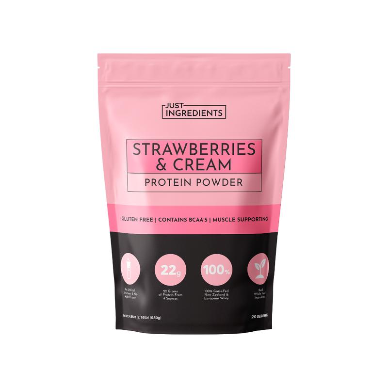 5. Just Ingredients Strawberries & Cream Protein Powder - 20 Serving Blend with 100% Grass-Fed Whey & Organic Plant Proteins – Real Strawberry Flavor – Supports Muscle Recovery, Energy*