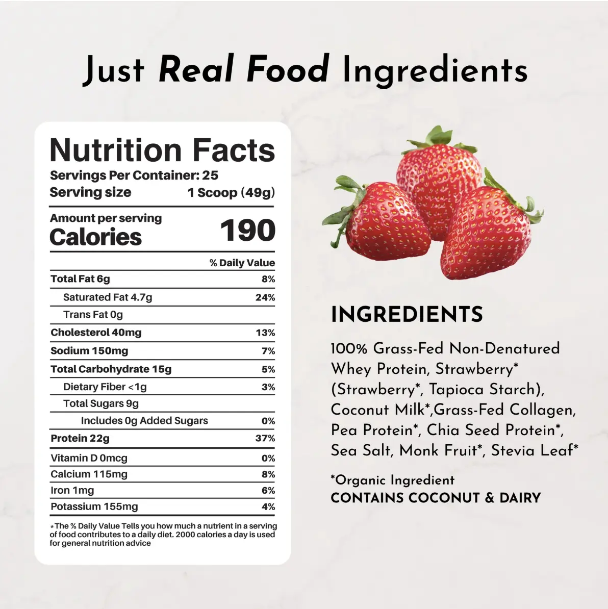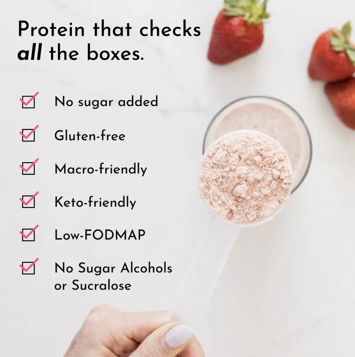 This protein shake is the best I’ve ever tried!!!! Most other shakes I’ve tried leave me feeling odd, but this one doesn’t. I know the ingredients are top notch which I am so grateful for! You can tell the strawberry flavor really comes from strawberries, the taste is incredible! I love that I can get a solid serving of protein from one scoop! I highly recommend!