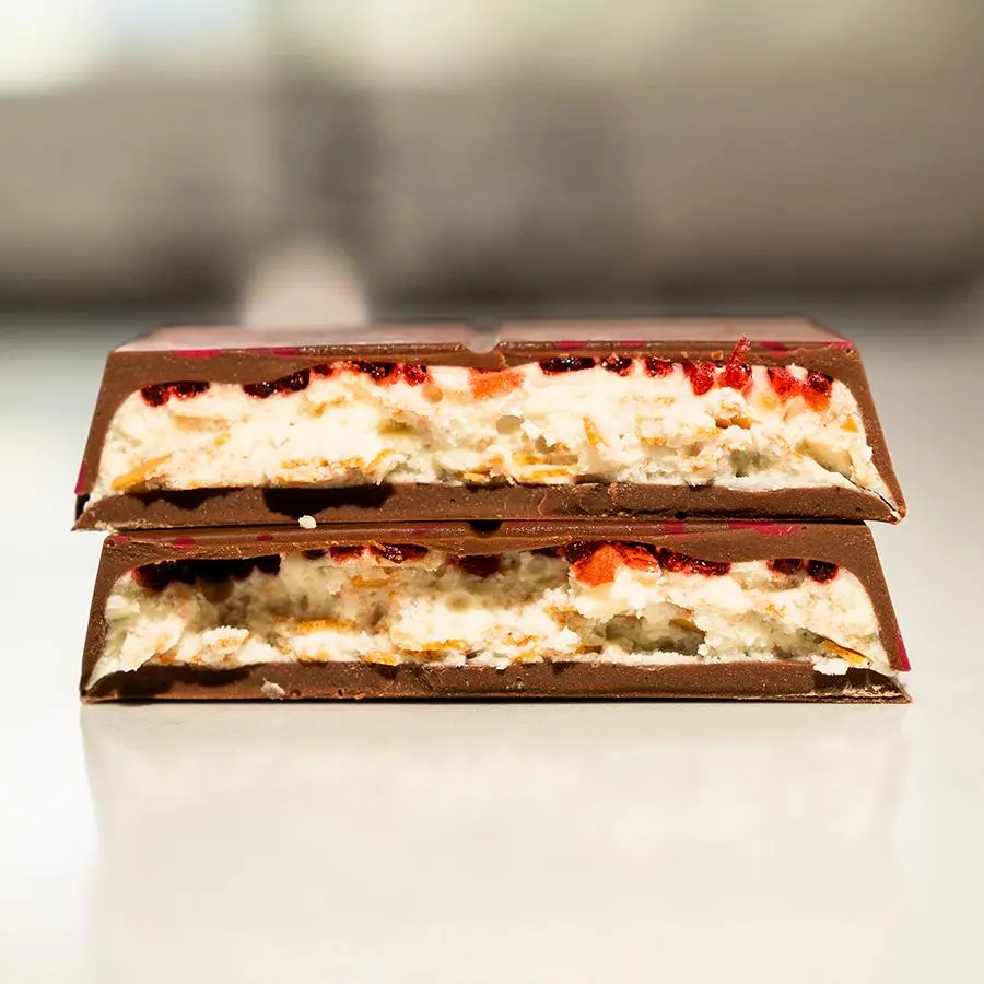 A perfect blend of velvety milk chocolate and the refreshing burst of strawberry cheesecake flavor, made to wow in every bite.