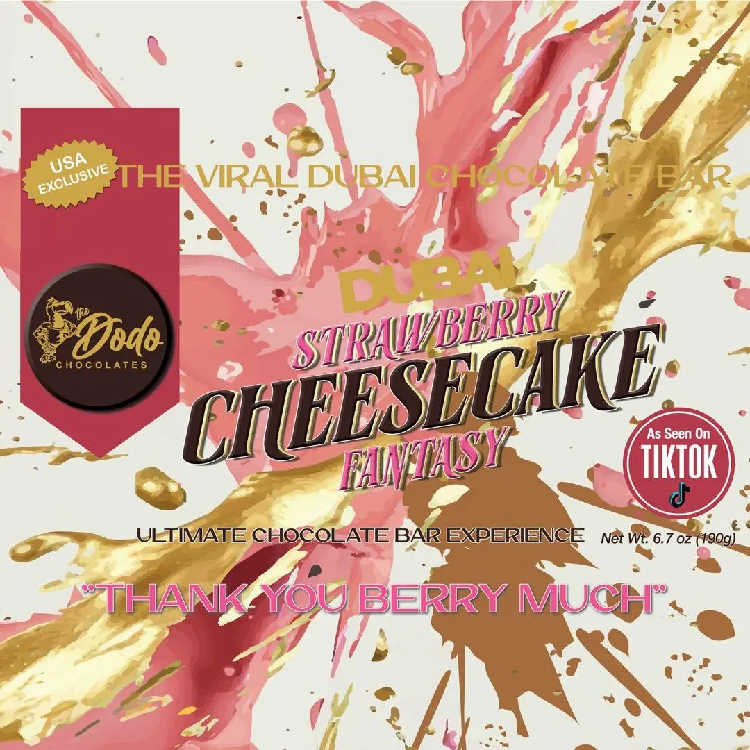 Don't miss your chance to taste the magic of The Dodo Chocolate's Strawberry Cheesecake Fantasy Bar. Order now and see why this Dubai-inspired delicacy is the talk of TikTok and beyond.