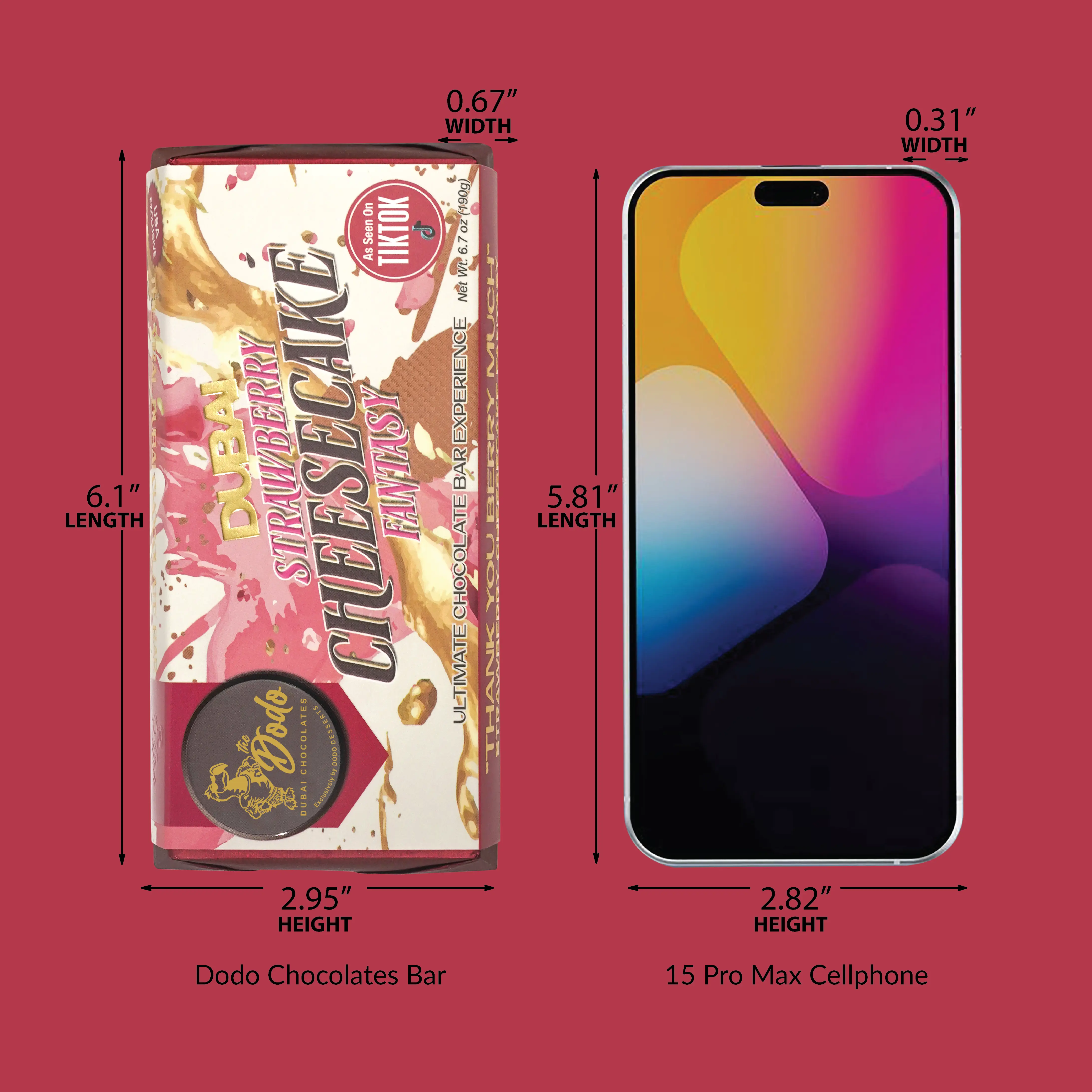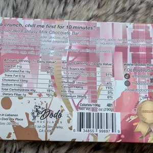 Crafted with precision in the Middle East, this 6.7 oz chocolate bar brings together the creamy richness of cheesecake and the sweet, tangy essence of strawberry, all wrapped in luscious milk chocolate. Inspired by a dreamy dessert experience, The Dodo Chocolate delivers the enchanting flavors of Dubai straight to your palate.