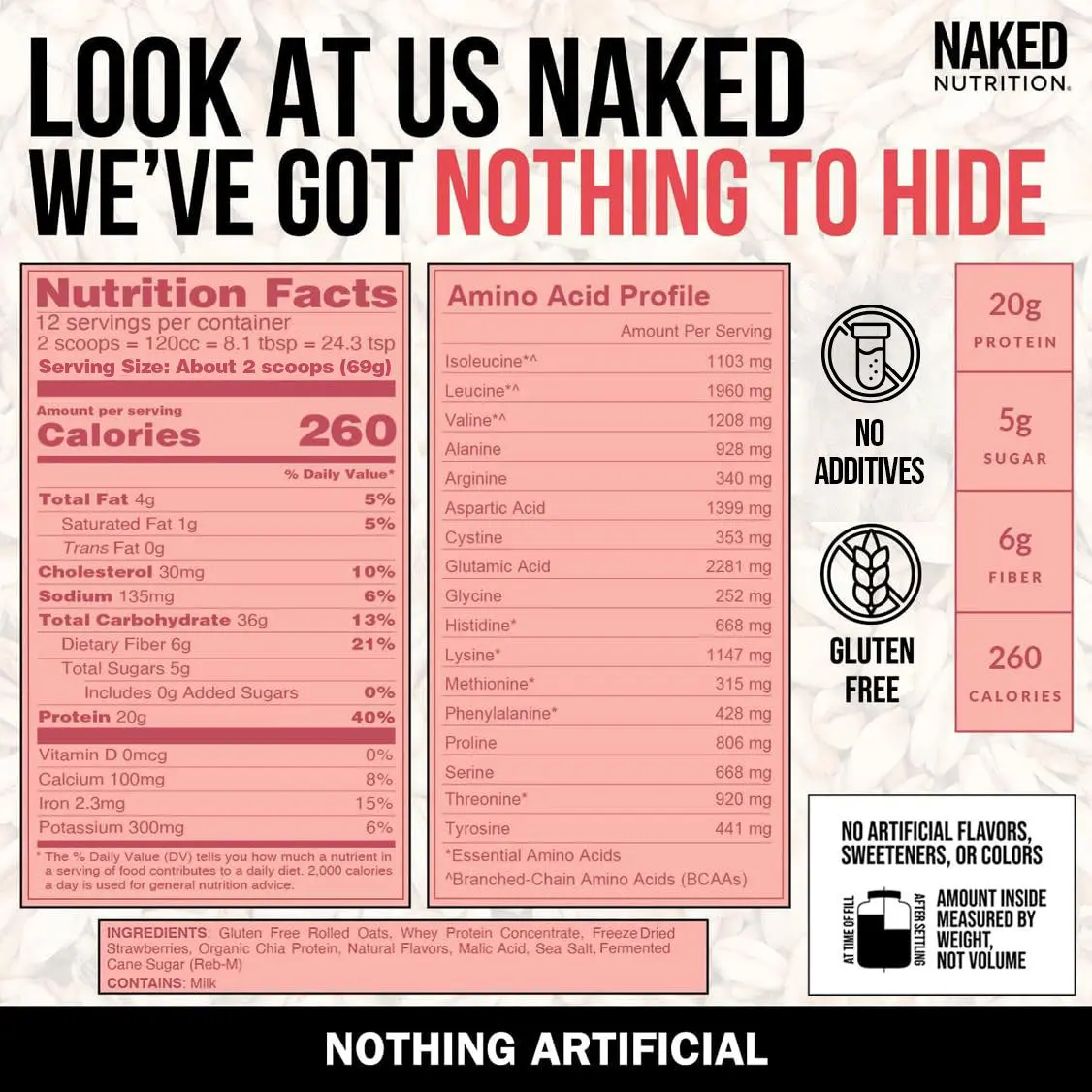 5. Naked Strawberry Cream Protein Oats - Gluten Free Rolled Oats for Lean Muscle Stable Energy Optimal Digestion - 20g Protein 6g Fiber 5g Sugar