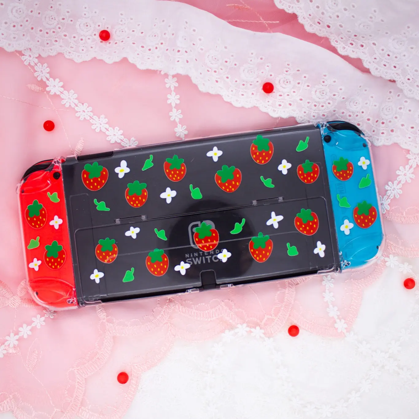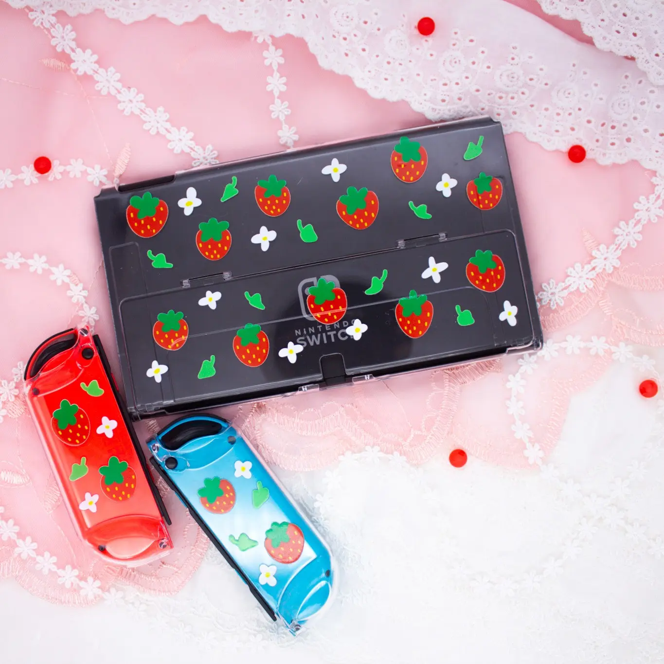 Strawberry Crystal Clear Switch OLED Hard Plastic Protection Case Accessories Cover for Handheld Game Console