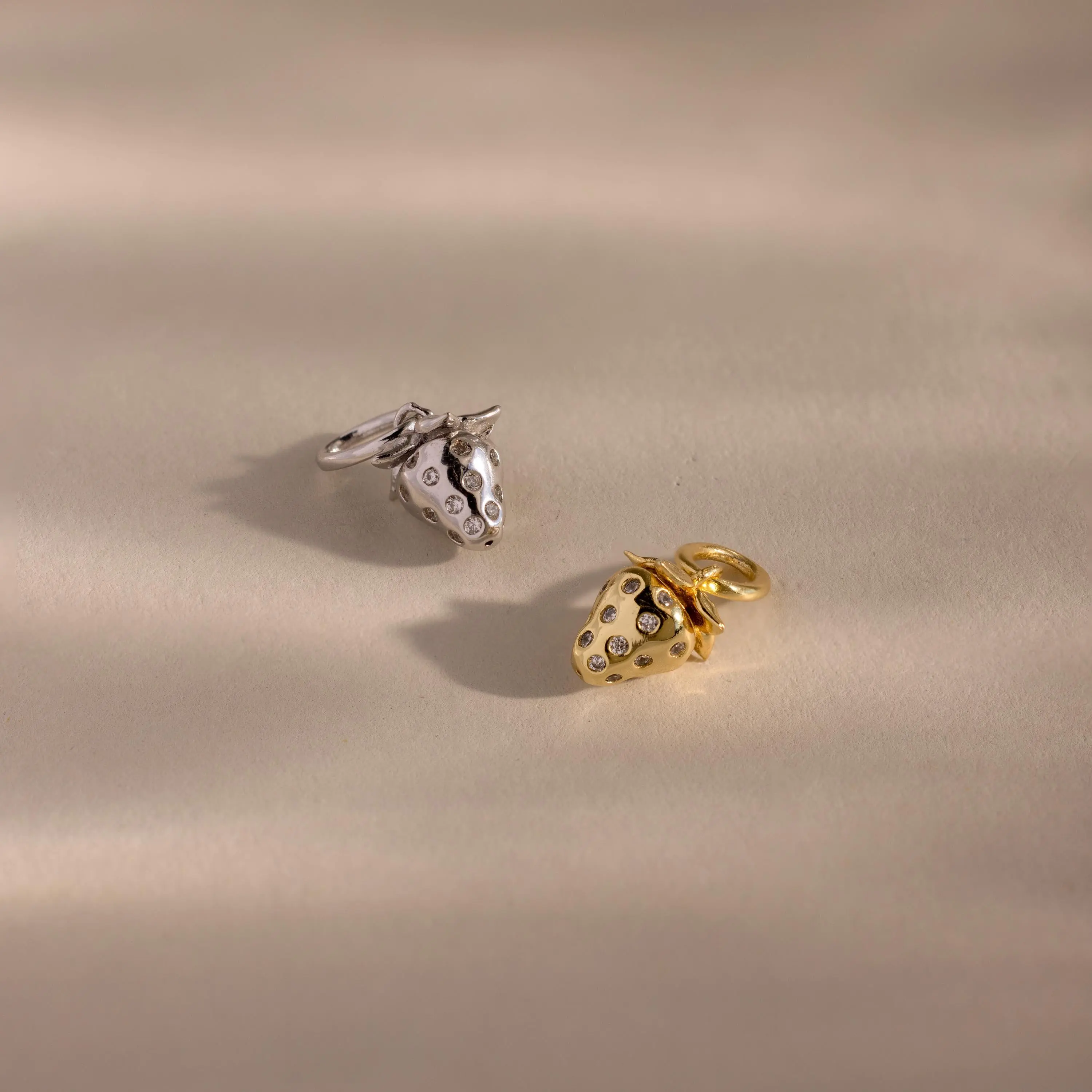Playful, juicy, and just the right amount of glam, our Strawberry Diamond Charm is a whimsical treat for your everyday look. Crafted in gleaming gold and dotted with twinkling diamond-like stones, this charm is a fruity symbol of joy, sweetness, and golden summer days ✨