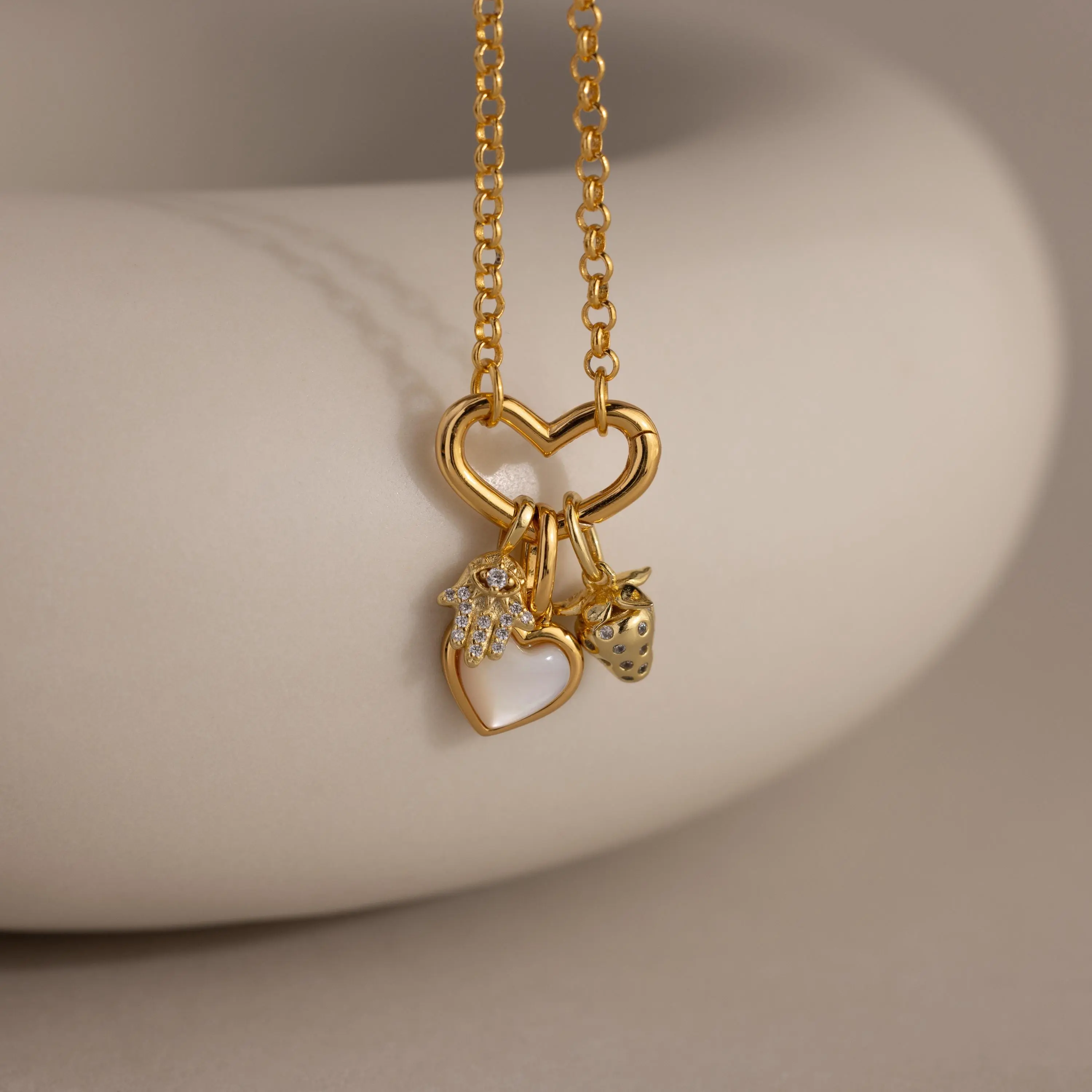 ·Featured Styles: Model showcases a charming, summery look featuring our Ribbed Heart Link Bracelet, Heart Charm Bracelet, and Heart Carabiner Set.